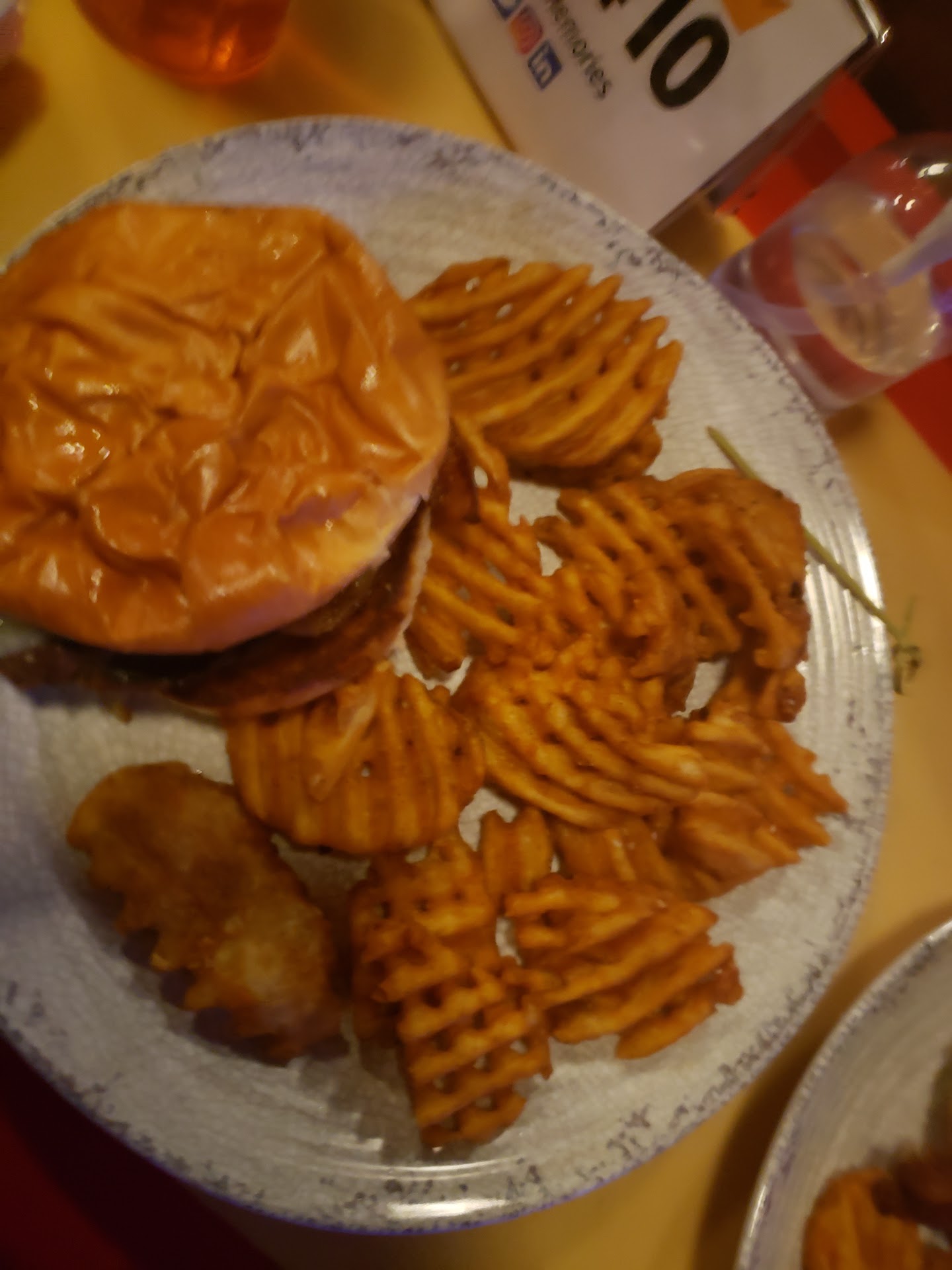 Read moreNot Very impressed, Ordered Over the phone and walked in to pick up. As i was placing our order(family of 4- 2 adults, 2 kids under 12) there was nothing brought up about not having specific items. Was told 20-25 minutes, walked to Kings, was Very impressed with the Look and thought that if we came back our children would love to bowl and play basketball. Met a Very HELPFUL lady behind the bowling bar. Advised her we were here to pick up our ToGo order. She went into the bar area, came back moments later and advised us that they were running late and it would be an additional 15ish minutes. Should have thanked her then and cancelled... but we didnt, they did seem sorta busy, so we opted to sit and have a glass of water. We waited a few moments, and noticed a man was placing an order, he came over and stated that they did not have Mozzarella Sticks anylonger... and asked what we would like to change it to... i opted for Boneless Honey BBQ wings... (4 for 8.99) waited some more and about 20 mintues later (close to 30 after we talked to the first young lady) a man brings out our Food, hands us the bill, states he was sorry for the wait, i asked him about our child's order of 3 Chicken bites, 2 mozzarella sticks and fries... advised us that he did 3 Chicken Tenders and fries as they had changed the kids menu as well, slightly upset and confused as to why this wasnt brought up earlier, we accept and just want to pay for our food and leave... waited a bit longer and noone came to take payment, So i again go and see the Young lady at the Bowling bar for assistance... she tries but has to call over the man that rang in our order... AS HE IS CHARGING my card and i am Signing for Our food, another bag comes out and he hands it to my husband. Confused i ask what was in the bag, that was the rest of our order... we leave and get back to the hotel, the Cornbread that is on the Menu with the mac and cheese, was MIA, My husband's Bourbon BBQ Burger, was dry, had the wrong onions, and "The worst burger he's had in a very long time" needless to say, WE WILL NOT BE BACK. We are giving a 2 star Because the place was Clean and tidy, and for the lady that was pleasant and helped us. But i will not reccomend this establishment. (Sorry for...