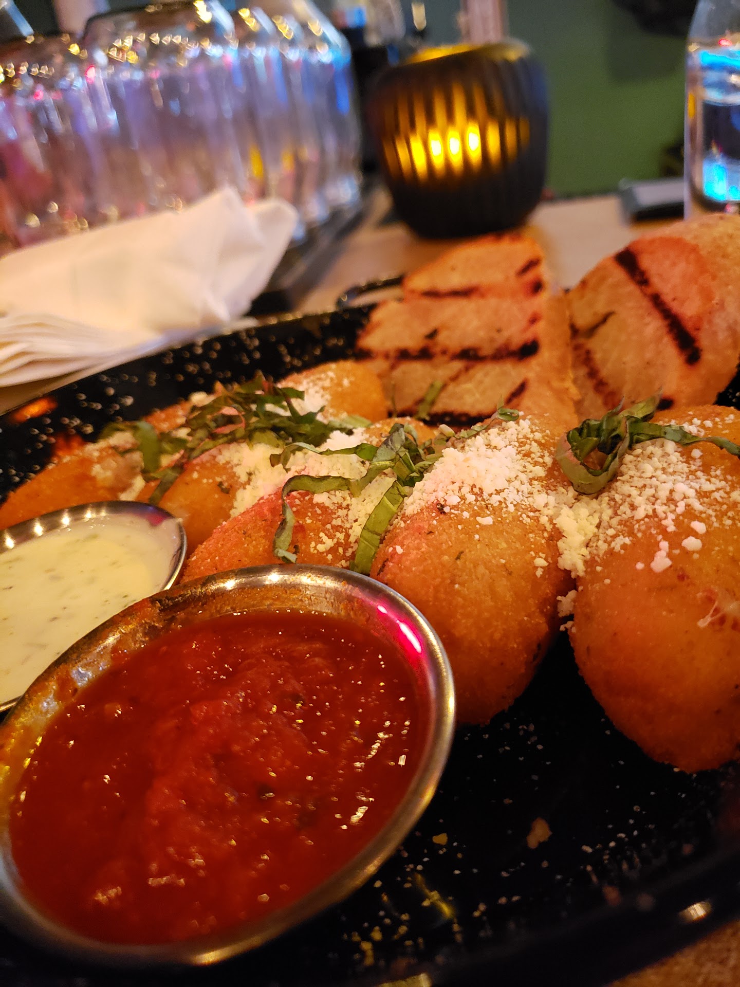 While we were waiting for the food, our server never came back over to check on us, so we had to go back up to the bar to order drinks separately from our food tab and bring them back to the table.