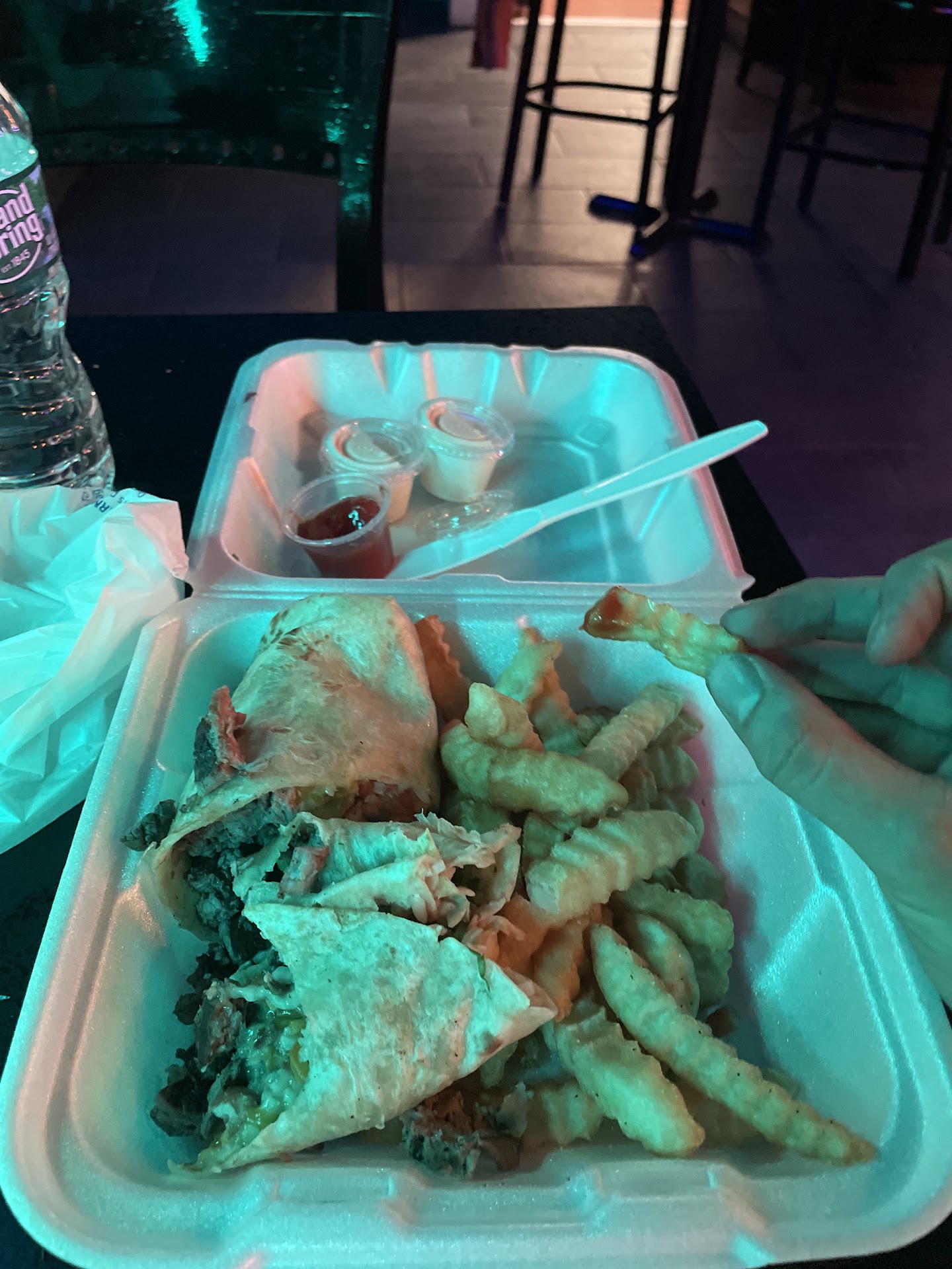 Where to begin with this mess of a “restaurant”? I walked in with my boyfriend and notice that the place is almost empty. It is also really dark and I can tell that this place has more of a Friday night bar kind of feel. Nevertheless I give it the benefit of the doubt since I was not looking for anything fancy. We ordered food and waited for 40 minutes, the waitress didn’t come to check in between and there are only 2 other people in the restaurant. I go up to talk to her and tell her that we have to leave soon because we were going to watch a movie, she says the food is coming out. 5 minutes go by and I ask again and I tell them that I didn’t expect to wait so long since then restaurant is empty. Then I notice that there is only ONE cook in the back and they have 5 waitresses just standing around. When the food came out it was nothing complicated. It was tasty but nothing worth waiting so long for. To make matters worse the manager told me she would help us a little bit with the bill due to the poor service and when we went to pay I noticed nothing was done. Unless you want to go to a trashy bar on a Friday night I would not recommend going here. Maybe they should hire more cooks and have less waitresses just standing...