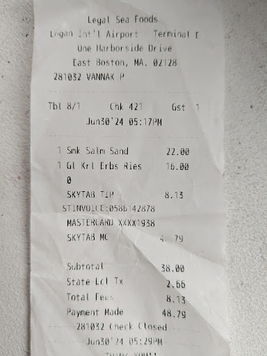 Read moreWhile the food was fairly well prepared and the prices and portions were as I would have expected of most overpriced airport restaurants…the service was AWFUL. As a young solo traveler, I was repeatedly ignored and brushed off by my server as I watched him give very good service to the other tables around me. Several tables with older patrons or couples/families received a positive attitude and kind service via recommendations, patience, and attentiveness from the server. Meanwhile I waited upwards of 15 minutes just to be acknowledged by my server. When I ordered a second portion of the clam chowder, I watched him go around several other tables before ringing in my order. Then I had to ask for the check twice while other tables who asked after me were paid attention to first.