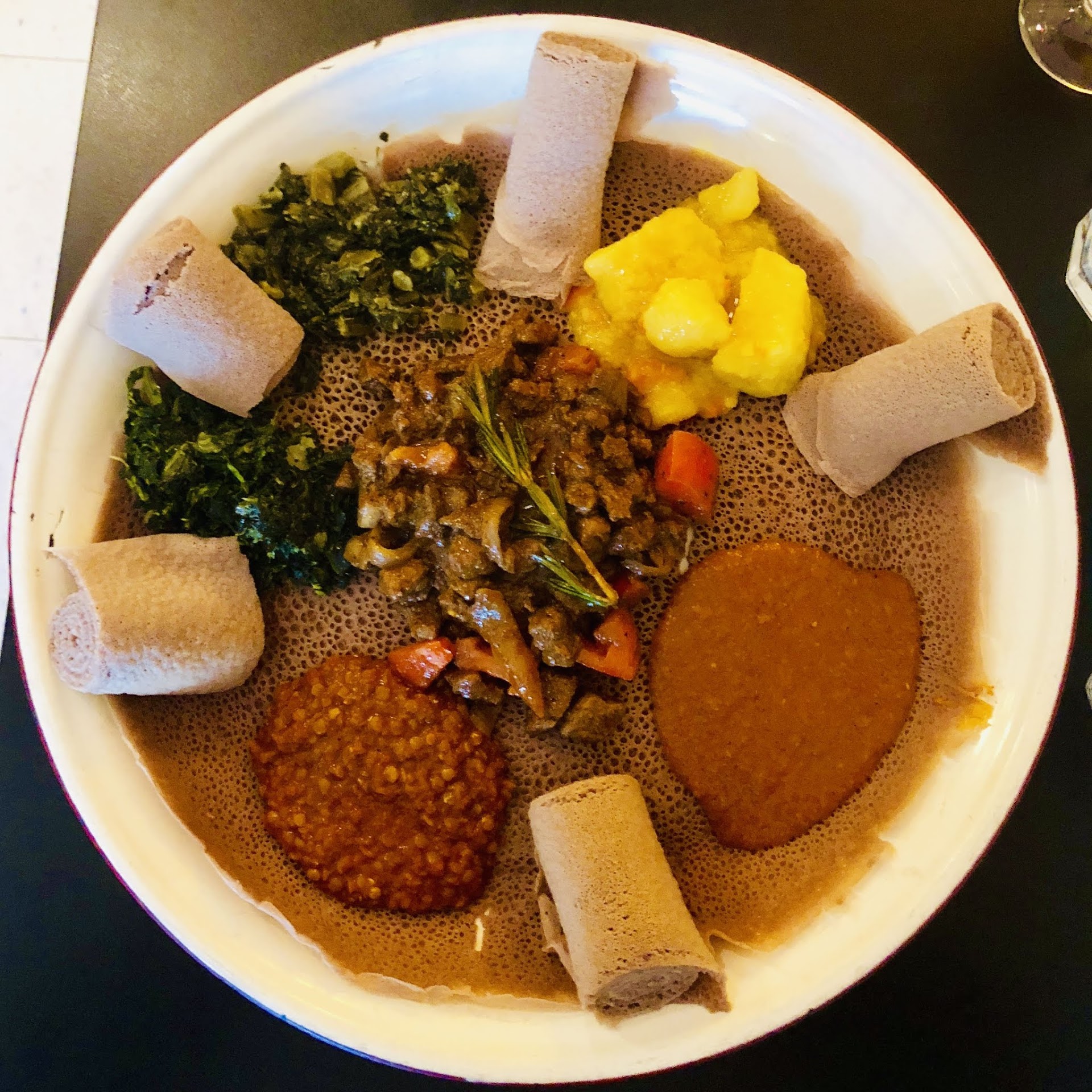From the moment I walked in, the inviting atmosphere set the stage for a fantastic meal. We got the platter for Combo 3 Yebeg - Spicy.Lamb cubes sautéed with onion, garlic sauce, and rosemary with all Veggies.