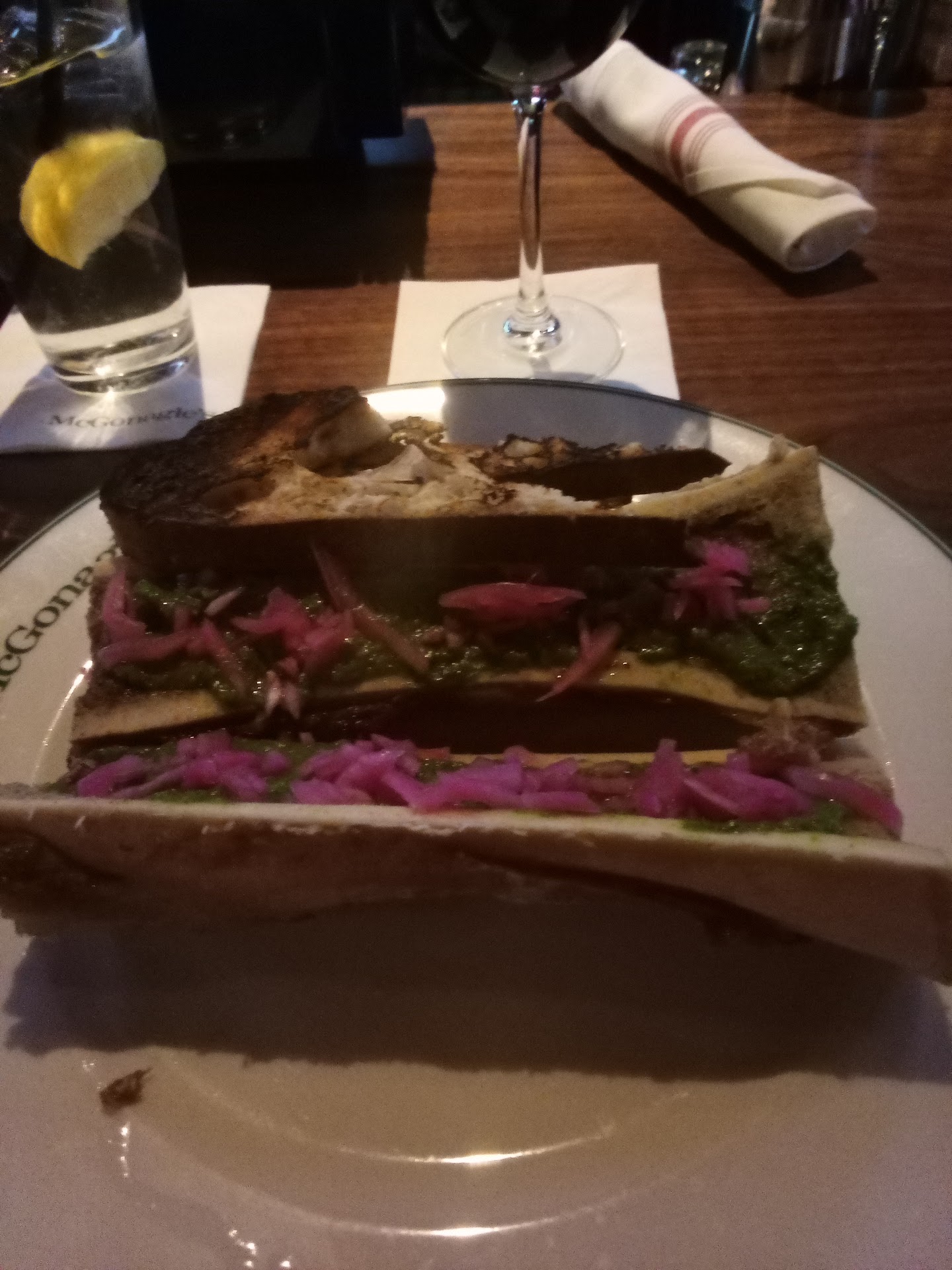 I had the pig in blanket appetizer which is a pretty traditional Irish sausage roll which is one of my favorite things. And this may be my favorite one now. I also had the steak tips with mashed potato and a side Caesar salad with peppercorn sauce. The side Caesar was a little chintzy but not enough to take from the overall meal, it was absolutely excellent.