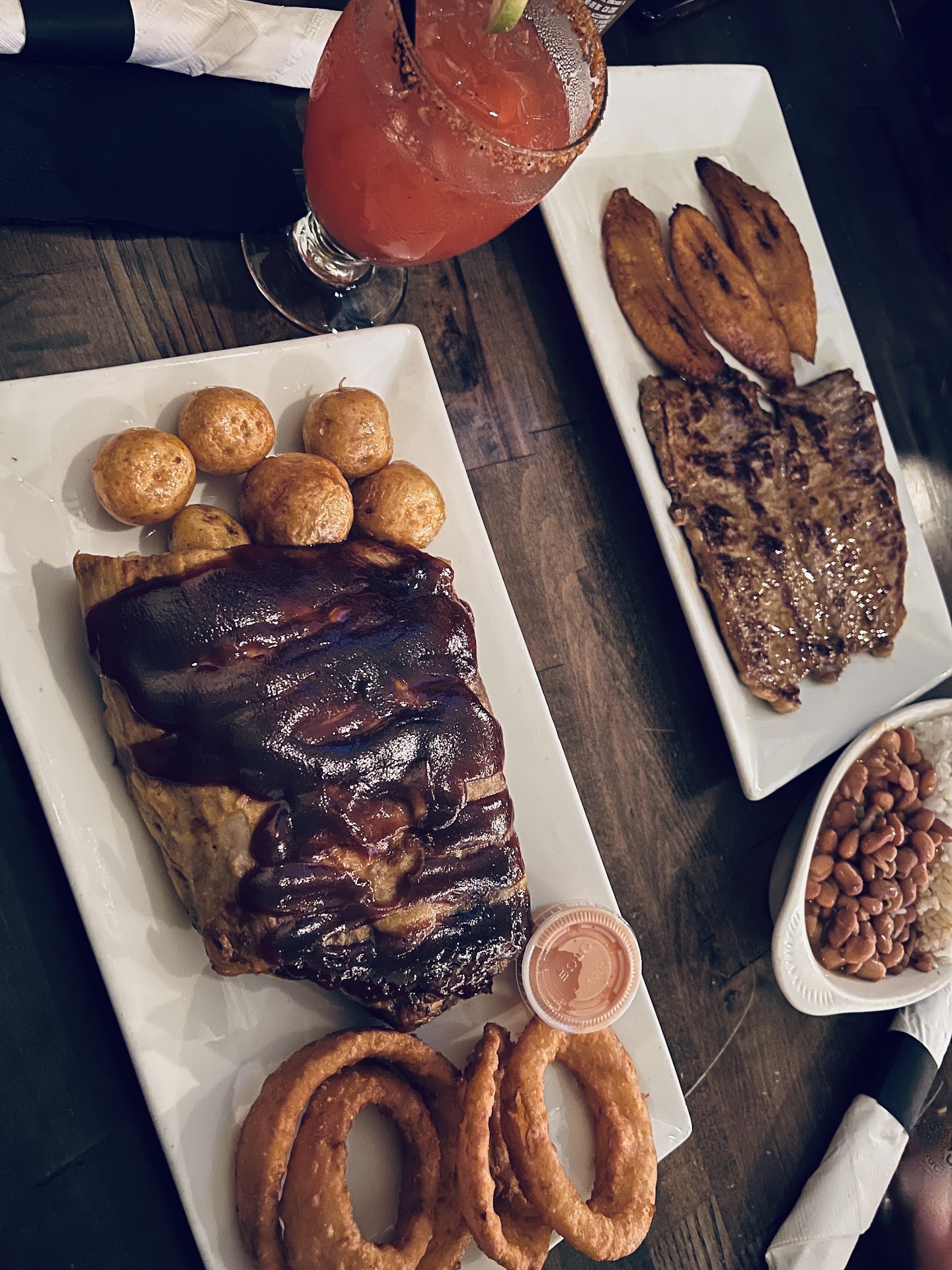 Read moreWent on Halloween night and it was busy so we didnât expect much for a service. Food came on decent time. My pork ribs looked like they boiled it (not grill)and top with Costco BBQ sauce. Didnât look appetizing. Ended up by gave half to my boyfriend (his steak was not well seasoned too).