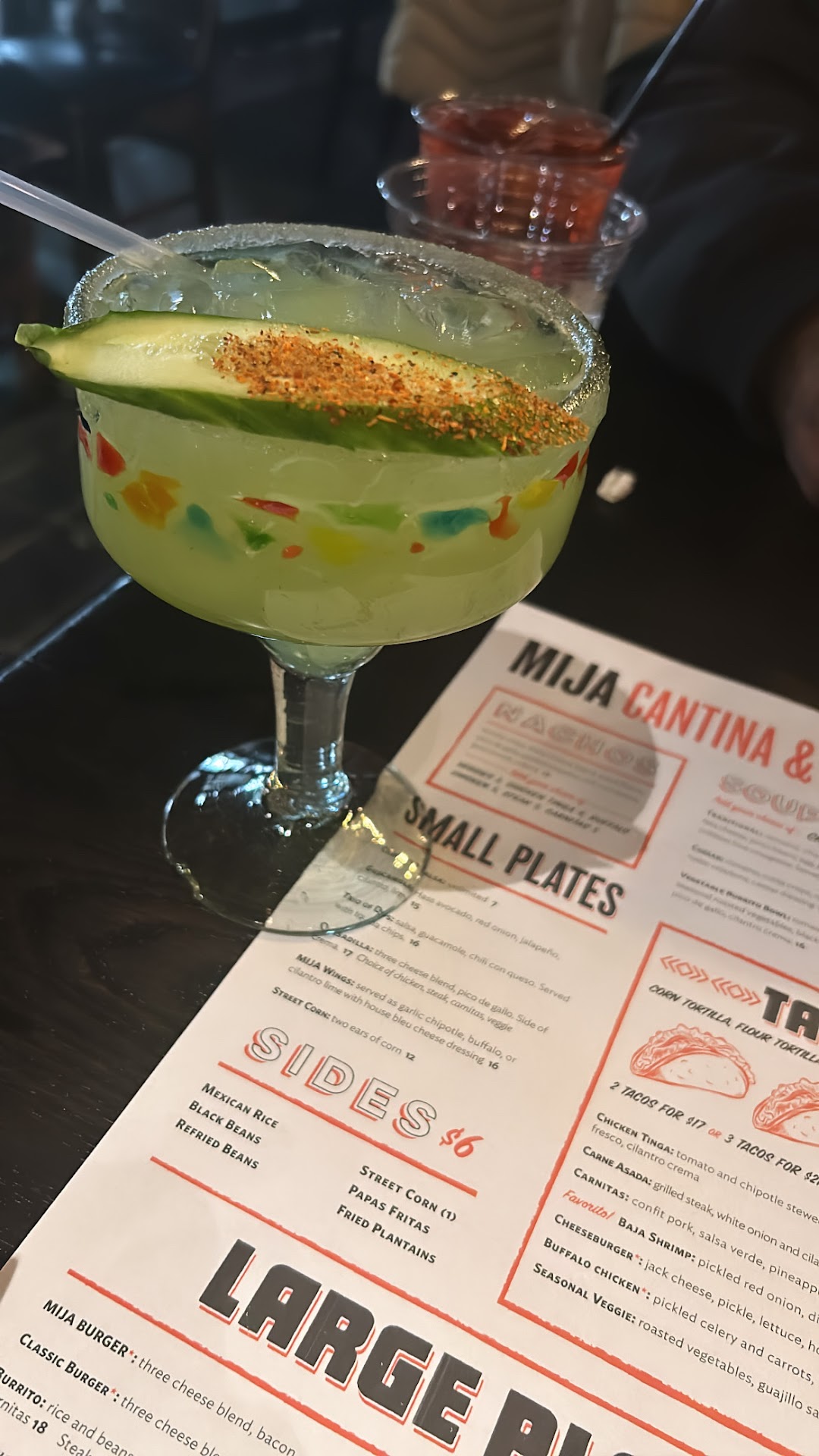 I have very mixed feelings about this place, the food was pretty good but there were a lot of things that kinda ruined the experience. When we got there it was pretty busy and a lot of people were there so clearly it’s a hot place at Faneuil Hall. The food was decent, I’ve had better, bigger portions and for much cheaper (ie Maria’s Taqueria on Tremont street), the portions they were on the smaller size. I got a burrito with veggies and it was weird bc there were whole Brussel sprouts, not even cut up or anything just whole steamed Brussel sprouts. A little strange as it wasn’t cut up or anything. I was also frustrated as there was no way to add shrimp to the burrito even though it was on other parts of the menu. I was bummed but whatever. Feels like there should be more options for protein as opposed to chicken, beef or veggies. As stated it was the experience that really hurt it. It was a pretty bad experience, the service was just bad. When we get there, the person at the front seemed almost confused by us being there, she said “one moment” left, we waited and then looked at the tablet while talking to someone, not sure if she was new or what but something felt off about the interaction. Anyways, so we sit down and just minute or two after we sit down someone comes over and asks us what we want, and we said we still needed more time. Then we waited for a bit and then the server came and we ordered. After we had ordered, we realised that the server never asked us questions as far as specifications, which was really strange. For example, my partner ordered a margarita and it had salt on it, the server never asked when there were other options. How odd. Then again, for example, my burrito came with either fries or Plantains and then we just got fries even though we wanted plantains. Luckily we did get both, but the lack of attention just felt weird. It worked in our benefit of course just felt strange that we never got asked. The part that was really frustrating is that they opened up the door in the middle of eating for the outdoor seating right where my seat was. It was freezing! We never got a single warning or anything and just left the door open, not even closing it when no one was using it just leaving it wide open. It was really cold and so we just had to rush out and wolf down our food. Talk about one heck of a way to kick someone out. There could’ve been so many better ways to deal with it and it’s a shame they didn’t, could’ve...
