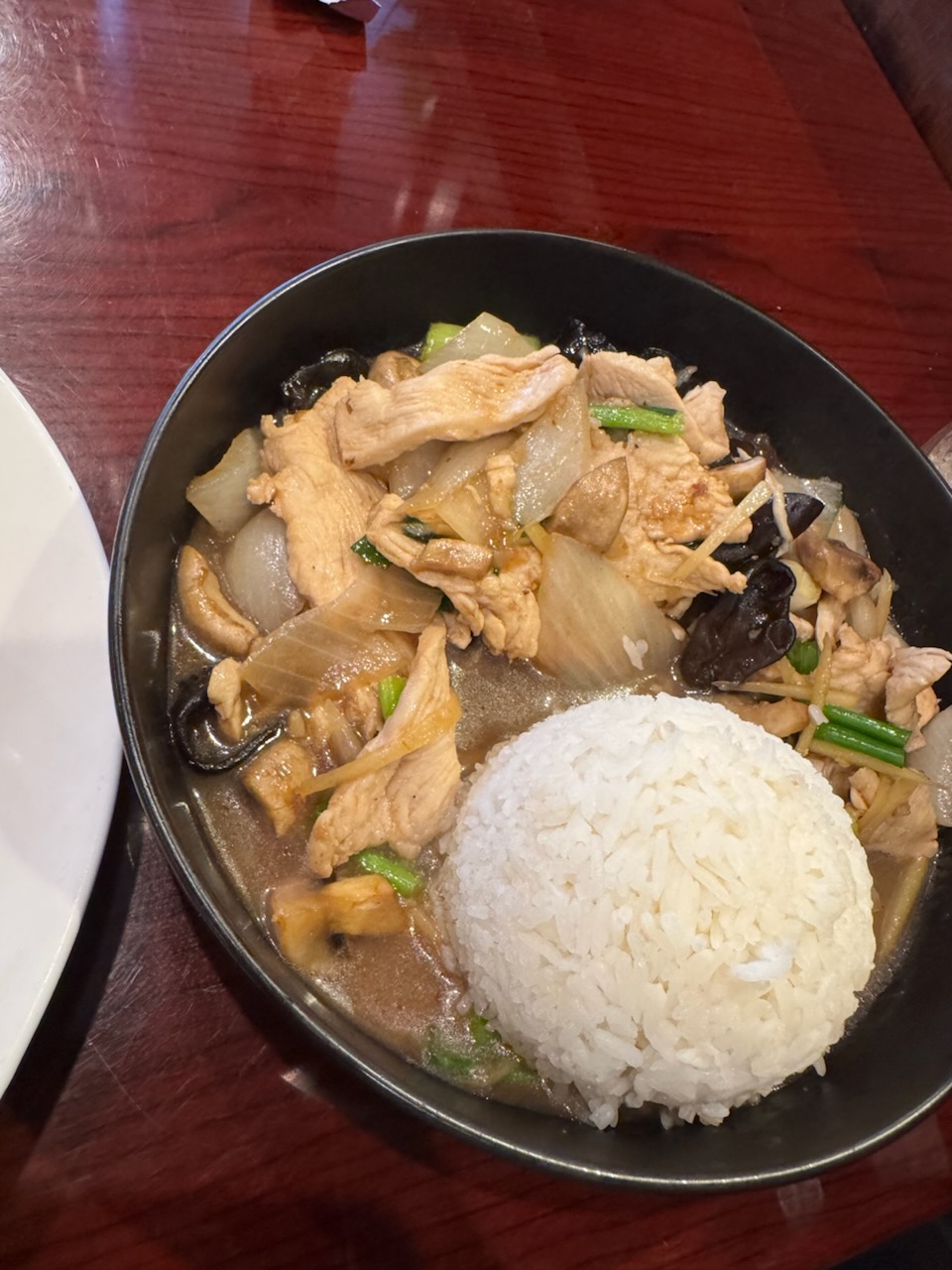 Ginger Chicken: This was disappointing. The chicken was dry and chewy, I thought the chicken would have been basted in ginger, but instead the dish is more brothy like than a sauce The mushrooms had more flavor than the chicken and they barely had flavor. Ginger was sliced into julienne pieces, but there weren't enough on the plate to make the ginger flavor consistent. The bites that had ginger were much better. Verdict: SKIP
