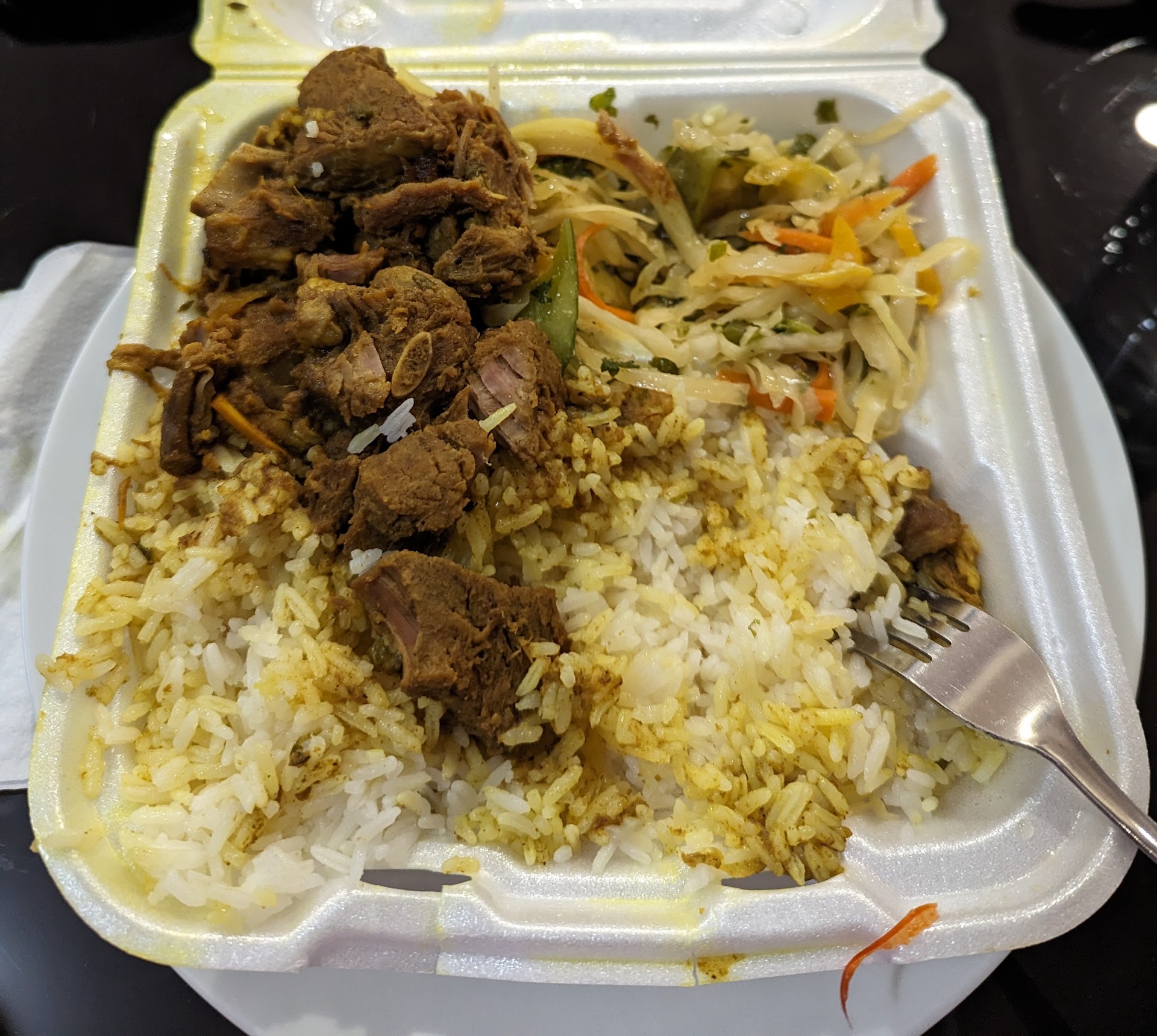 Read moreThis was my first and last time ordering from here. I love food and will pay for great food... Now, I paid $18.20 for a medium plate that was supposed to come with plantains and I asked for steamed cabbage and this is what I got!!! Where are my plantains? Where is the steamed veggies? Why do I have chicken back and all small pieces of meat I paid $18 for??? Make it make sense! Instead of charging me when the order was incomplete, they could've given me a heads up and said they didn't have enough to make a medium plate and I woulda canceled and ordered elsewhere and got my money's worth! They notified me when they didnt have the jerk pork. So y not lmk u didn't have what u needed to make a medium plate or sides that comes with plate? This ain't what I paid for! Unprofessional! I called numerous times and they finally but say nothing! You can hear the wind in the background and rain because it's raining. They knew they sent me whatever because they were closing. Y'all see what i ordered and what I got. Horrible! I could've spent my money elsewhere and with better customer service. I hate wasting money and especially going to new places... Oh! And Ubereats won't refund me even knowing they took my money and didn't send me what I paid for! Never again will I order...