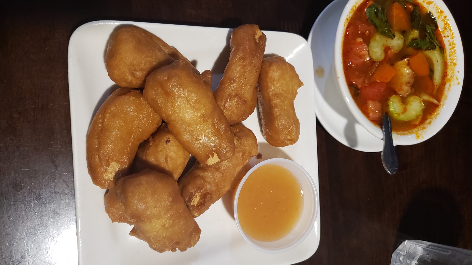 The tom yum gai definitely stole the show. Since many Thai soups often contain seafood, I've never ordered it before. I was thrilled to be able to try it here, and it was fantastic. Beware - the first few spoonfuls were incredibly spicy!