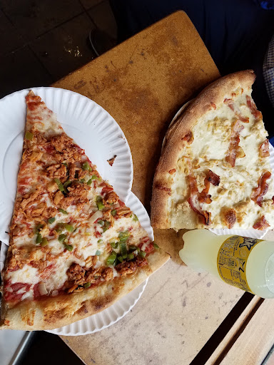 Read moreWhen I'm feeling lazy I'll make a quick stop by here to pick up a slice of pizza. They have a constant rotation of various specialty slices so there's usually something new to experience if you don't come here too often. If all else fails I'm also a huge fan of their plain cheese slice. Slices here are a bit on the pricey side ($3.95 for a plain cheese, $4.95 for a special slice) HOWEVER the slices are absolutely huge (see the pictures here as a reference). One slice is definitely more than enough for the average person. I've also had their chicken Caesar wrap and onion rings which aren't bad but nothing to write home about.