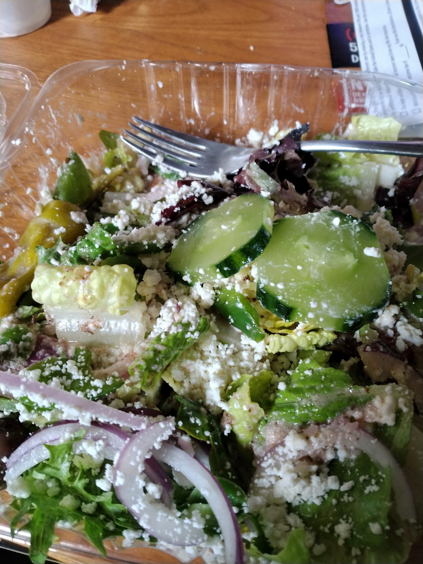 Upon receiving the salad, I asked the girl if they had added the extra feta (an upcharge of $2), to which she replied yes, but the way things had preceded, I decided to check myself. Glad I did, b/c the amount of feta in there was questionable. I'm not even sure they actually put extra feta in there. If they did, it was bare minimum. I returned to the store pointing out the small sprinkle of feta crumbs, and asked "If this is extra feta, what does regular feta look like??". She asked if I wanted some more in a side container, and I replied, "Yes, b/c I was charged extra for it." I guess it shouldve been no surprise when she came back with a small plastic condiments container half filled with tiny crumbles.