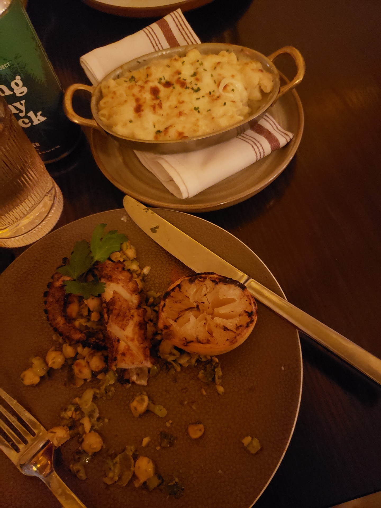 The food was the real star of the evening. Every dish we tried was flavorful and well-prepared. The grilled shrimp was exceptional — perfectly cooked and seasoned. The lobster roll was rich and satisfying, while the grilled chicken was tender and juicy. The bouillabaisse offered a nice mix of seafood flavors, and the warm sourdough bread was a comforting start to the meal. For dessert, the chocolate mousse was decadent, but the skillet cookie truly stole the show — warm, gooey, and packed with chocolate. It was the perfect sweet ending.