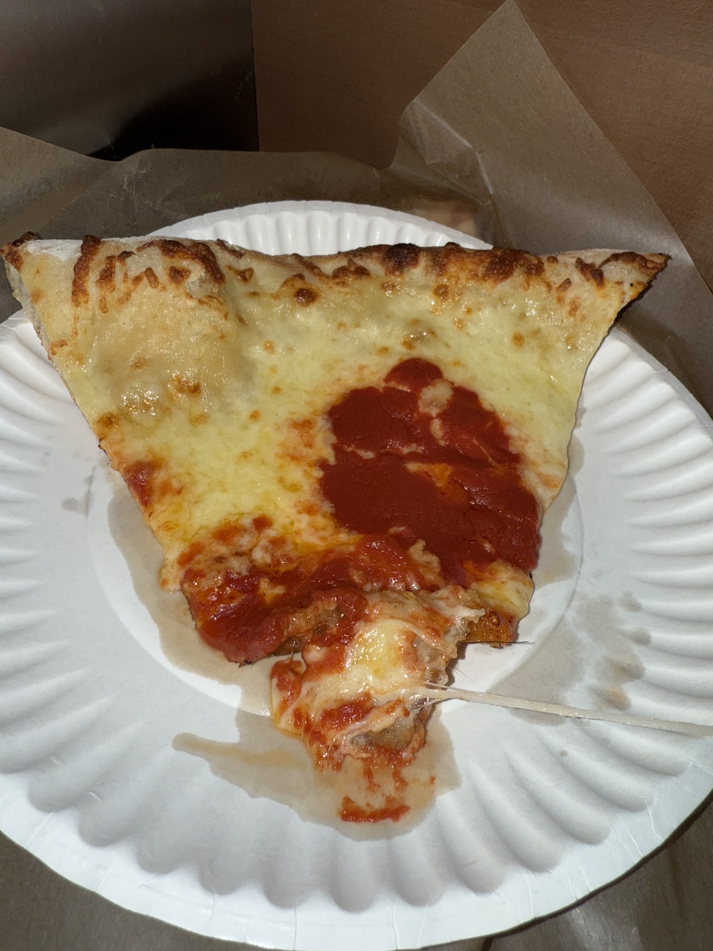 The slices are a good size and they aren’t overly greasy. The cheese is very fresh and the flavor profile of the cheese sits perfect with the flavoring of the pizza itself. The crust was crispy and had the perfect chewy middle. The slice experience was a taste bud pleasing one as the sauce to cheese to crust ratio is spot on.