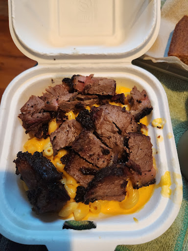This order started with a receipt on the bag that was more than I was supposed to be charged. Not a great start...I ordered a cup of Baked Beans, Cornbread and the Smothered Mac and cheese [with Brisket]. The cornbread was near-perfect- a slight sweetness and moist, but still held together; The Beans seemed to have an identity crisis: The initial bite was good but the finish was cloyingly sweet. This tastes tomato-forward, and there are a variety of beans [NOT vegetarian], but the lingering sweetness is odd (especially when it doesn't taste familiar, akin to Maple or Molasses). If you like sweet, you'll enjoy this but for those who prefer a more balanced flavor, eating this with the cornbread was great. I would actually order the two as a meal and be satisfied [doctoring with some red pepper flakes]. The item I was most anxious to taste was the mac and brisket. When I saw the portion, I was immediately perplexed..$16....and you give me a wartime ration? As soon as I saw the macaroni, I thought was being punked. $16 and change for a lunchtime size....WITH MAC-N-CHEESE YOU CAN FIND AT 7-11 AND MICROWAVE. That was enough to disassociate from this...