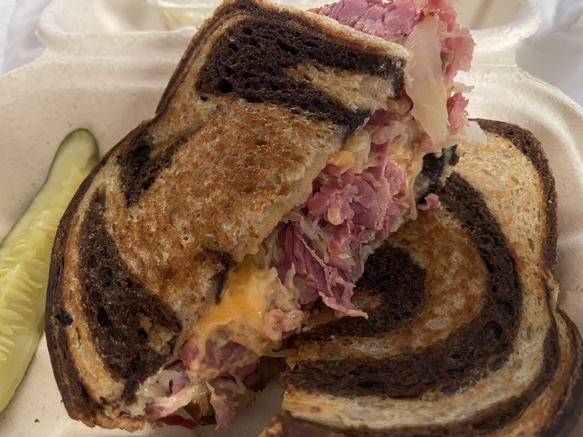 The bread was just right. Heavy and thick enough to hold up to the ingredients piled high, yet soft and delicious. The bread didn’t turn soggy or fall apart. The corned beef was tender, flavorful, and they don’t skimp on the protein!