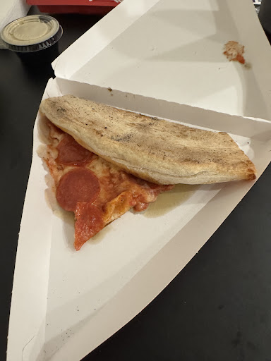 The girl we ordered from was very cheery and helpful. However, when we got our slice and tried it, the dough was very crisp on the bottom, however the rest of it was EXTREMELY raw. It was gummy and yeasty and very unappealing. It was almost like it was frozen when it went into the oven and only the bottom, where it was in contact with the pan was cooked.