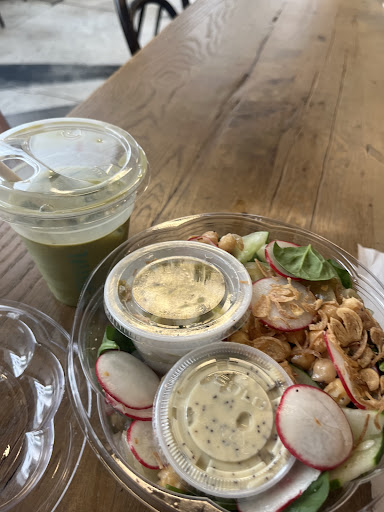 Read moreI came to revival on a Thursday afternoon, and it was pretty quiet. The inside was well designed and the staff was decent. My issue comes from the food and food quality. I ordered an iced matcha which is slightly sweeter than I prefer but otherwise good. The problem was with the chickpeasy salad. I was unaware that the salad came tossed with dressing, and before I took it from the hands of the person handing it to me, I asked if it was possible to get it remade, as the salad was drenched in dressing. He assured me that it would be able to be remade. 5 mins later, it was remade and was excited to try it. Much to my dismay when I removed the cover on the salad I was hit with a smell that wasn’t fresh and all of the toppings still had dressing on them with some looking like they’ve been rinsed. I am not sure if the person who remade the food didn’t think I would notice, but I notice food quality and presentation. If you zoom in, you can notice the poppy seed dressing still on the chickpeas, radish, and pickled onion. The cucumbers were soggy. I could not eat it. I didn’t approach the staff about this matter because there’s an obvious lack of concern for patrons health and proper food safety practices. The drink was okay. I...