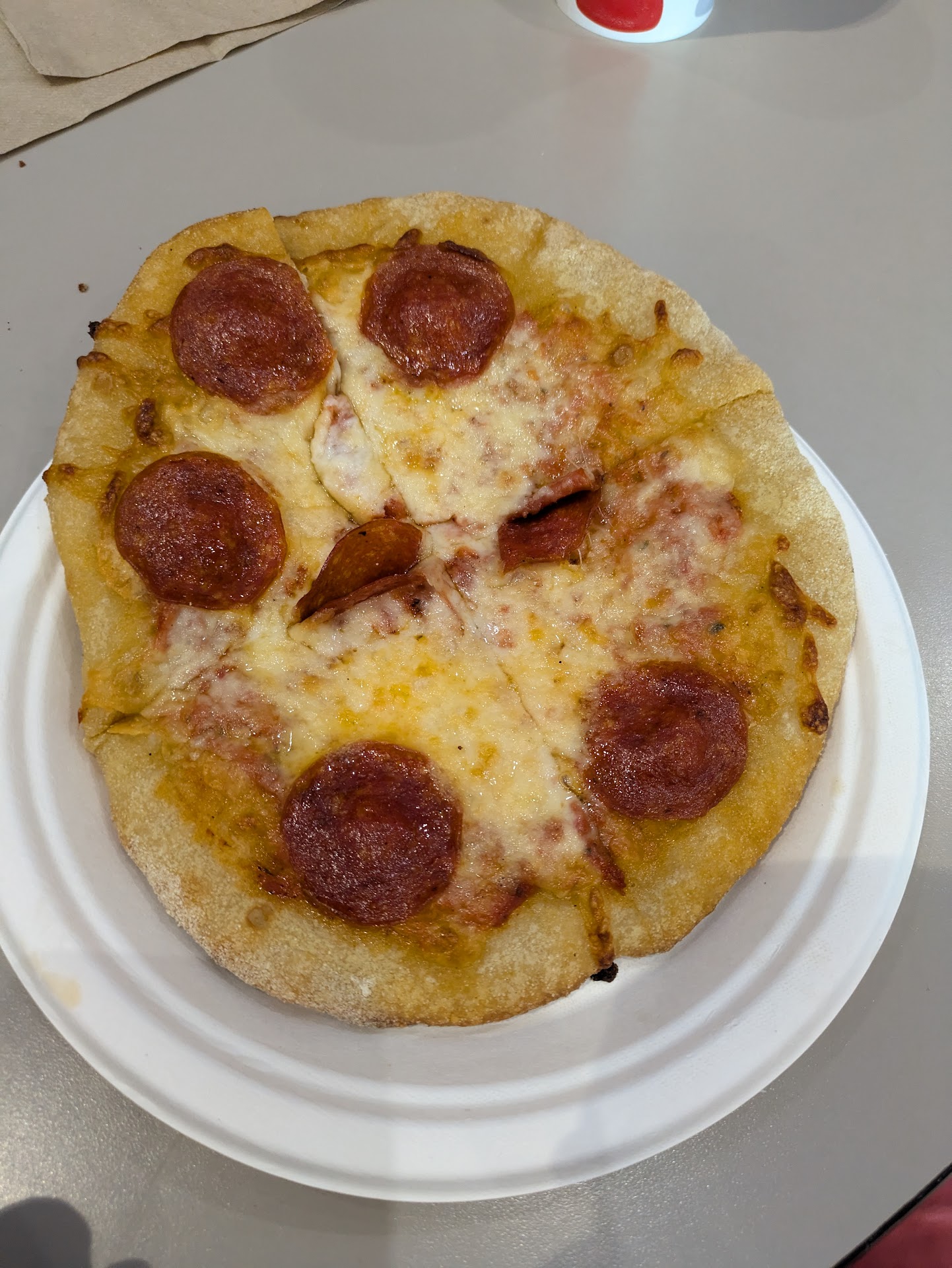 Read moreOverpriced food. Pizza was ok, the mac and cheese was good. The layout of the restaurants made me think there was only two, but come to find out, the other one was tucked on the back side. Too bad, i already picked up the bland pizzas and probably would've opted for the chicken strips instead, oh well. Seating area was crowded and tables were not cleaned after each family, so bring sanitizer. Overall, typical cafeteria style eating, self...