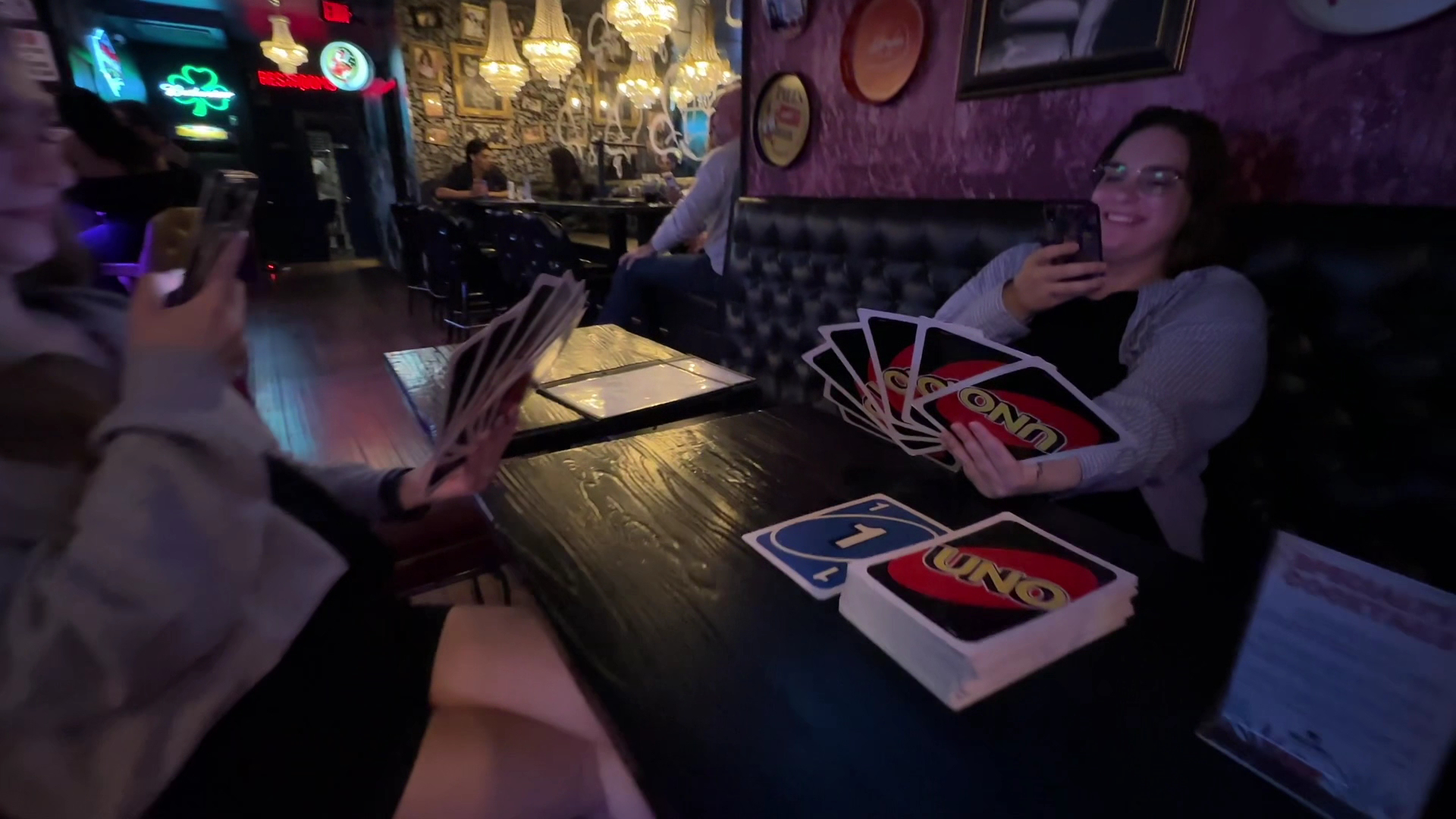 We had to flag her down once again to get our check and she came over and just left the portable card reader on our table and vanished to go be on her phone again. The vibe of this bar is great, hope you find better...