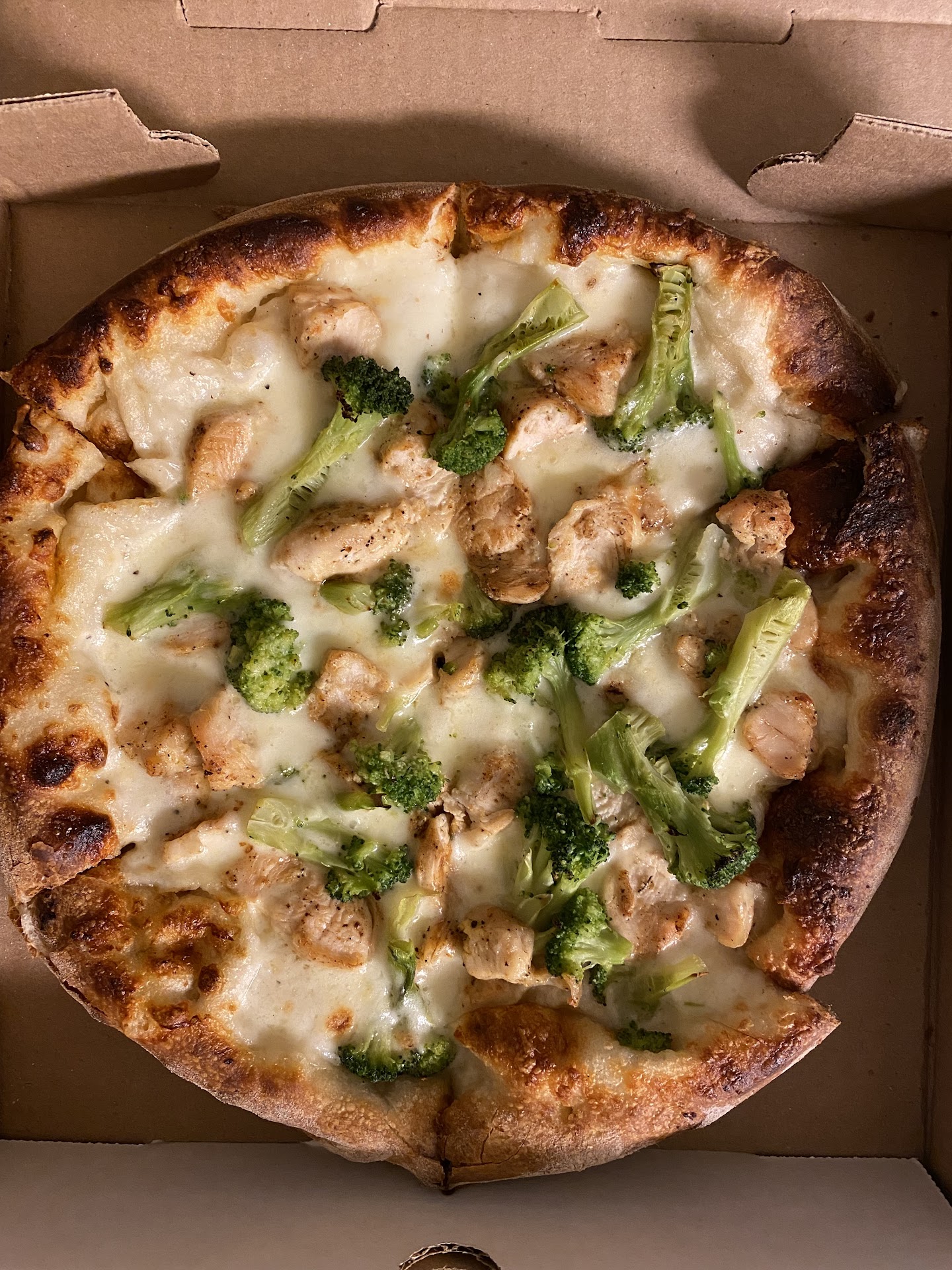 I thought about giving 2 stars but after much consideration I’ve decided drop it down to a 1. This is because the pizza was in fact hot and delivered fast, and admittedly was pretty tasty going down, but not so tasty coming back up. We ordered the chicken Alfredo pizza and it made both me and my wife very sick shortly after eating. We spent the rest of the night praying we could expel whatever it was that made us sick, and given that was our only meal fresh off of a 3 hours flight, we can only assume it was because of this pie.