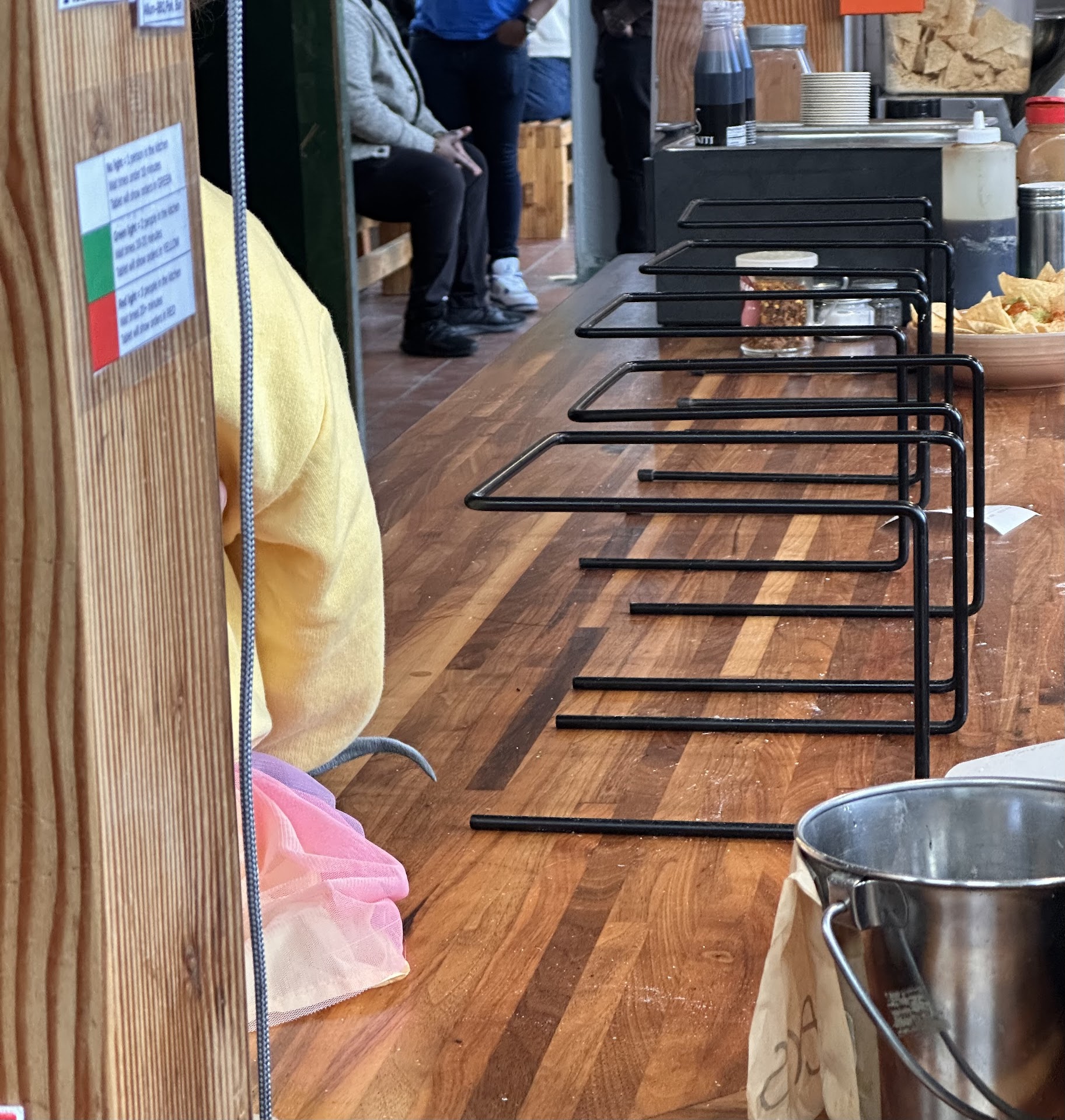 No sneeze guard where food is placed for pickup so people are talking over your food. Parents are entertaining their kids by holding them up to watch the cooks so who knows what is dropping on the food.