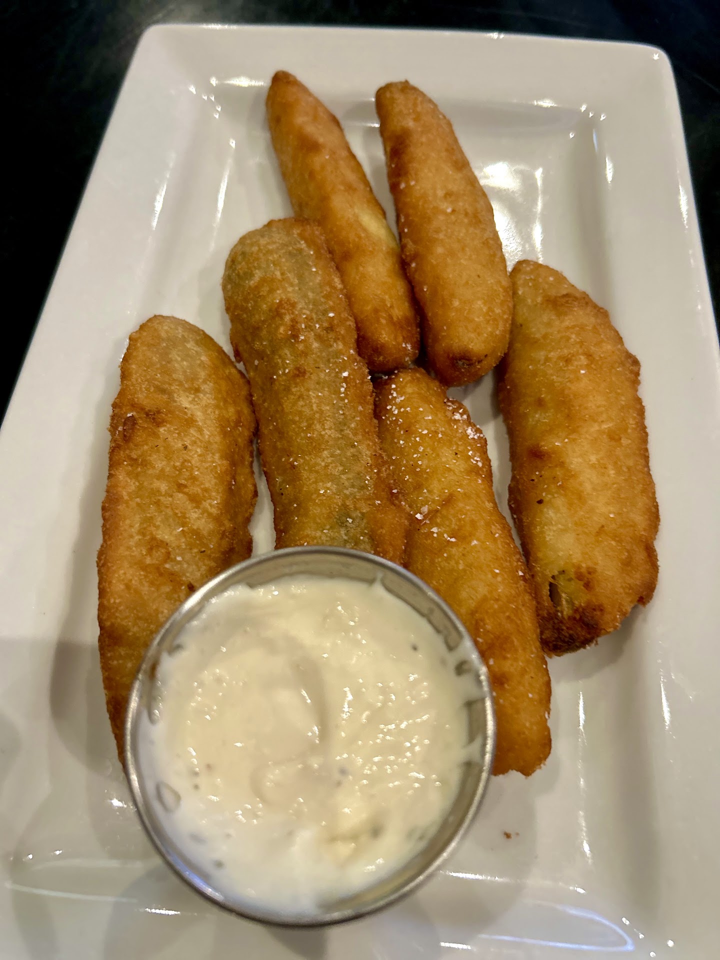 The food was mid-tied, GREASY, and overpriced. It took 40 minutes to receive our food. We ordered several appetizers including the Fried Pickles and they were awful⌠and I eat practically anything. The food was either poorly cooked, not properly seasoned, or tasted like it came from a FROZEN BOX. A few of us got burgers and they were either undercooked or way over with cold Pattieâs. The only redeemable part of our night was a flatbread pizza which you canât mess up!