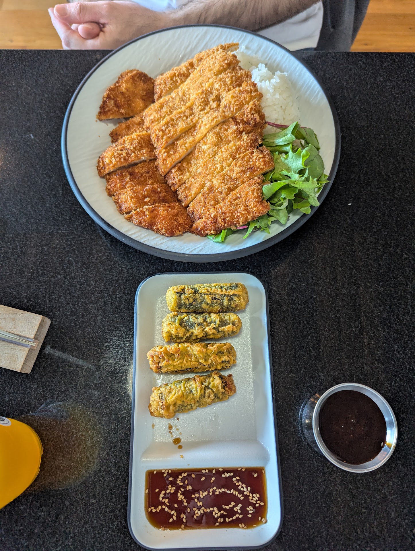The Chicken Katsu was really good, fried and crunchy and savory without adding any souces to it, but even better with one.
