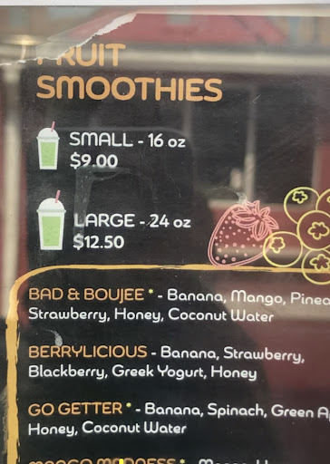 Ā Ā Ā Read moreThis is the first time I ordered from this restaurant and My cousin and I absolutely LOVED our smoothies! I ordered the āLife Is Goodā smoothie! Audrey, who worked there was so helpful in my selection process and I can not thank her enough. If you do go in there please send her a āhelloā. My cousin was worried that she would not like the Kale/spinach mix in the āLife is Goodā smoothie since she is not a Kale fan but after tasting mine (Audrey did state that the kale would not be overbearing) she will be ordering that one when she is in the mood for a vegetable and fruit smoothie. My cousin ordered the āBad and Boujeeā smoothie which was just as fabulous and delicious as the one I had but that it was all fruit. Overall this place is 5 stars for taste, quality, service and...