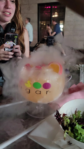 We arrived at 8pm they asked if we had a reservation. We said no and the girl said that we could only sit at the bar but had to be 21. She then said outside. We chose outside because it was a absolutely beautiful evening, (although eating inside would have been an amazing experience because of the vibe) After a few minutes our waiter Manuel came out. I asked him if there were any gluten free or gluten friendly options and he stated that he didn't know, but whatever I ordered he could check with the kitchen and let me know. My daughter wanted (the burger flight, which was colorful buns with a rubber duck). I decided to go with a burger with a horseradish sauce (Minus cheese/ bun) and fries. It was slightly busy but no super crazy at this point. We needed a couple mins to look through the drink menu as it was quite extensive with lots of details. It took several minutes before he came back to take our drink order. Our food arrived and my daughters meal did not have the duck but we thought maybe it came at the end (even though the picture showed it on the plate). My burger ended up coming out on 2 slices of white bread and no sauce ( I had to clarify whether it was gf or not as I did not want any bun. Instead of fries they gave me came with a salad lettuce with a sauce on it). We had no cutlery and no one came out to check on us. I asked someone cleaning off a table beside us for cutlery and the horseradish mayo. It took probably 10 or more mins before they returned with cutlery and even longer for PLAIN mayo. Finally our server came out and I said to him the issue and he stated rudely "well I didnt make it , I dont know!" We were almost done our food before the drink arrived. It was delicious and exciting experience with dry ice. We were really enjoying it when we realized it wasn't what we ordered. We ordered a Tasha Baby (Pina colada and raspberry mix) but this was clearly a peach mango something. It tasted amazing but still not what we ordered. Manuel never came back. By this time it was pushing 10pm. When he did finally come, I explained that we didn't get the right drink . He said well you already drank most of it (I said you never came back to us) and again he said rudely well I didn't make it, what do you want me to do? By this point I was extremely upset, I have never ever been treated so rudely by any wait staff in my life. As a former waitress in a very busy establishment I would never treat my patrons in such a way. Regardless if it was a issue on my side or if they were irratw. He said do you want me to make you a new one? And I said no, we have already been here 2 hours, we need to get going. He said he needed to go find his manager to see what he could do. After several minutes he came back and had taken the drink off the bill. Which by this point I was tired of the bs and accepted that. Even though my meal was completely wrong, my daughters under cooked. We ate it only because it took so long to get and we hadn't eaten all day. The gf bread was falling apart and not that appetizing, the horseradish sauce turned out to be plain mayo, the mushrooms were rubbery, the burger itself was delicious and cooked perfectly for me. He did not ask my daughter how she wanted hers cooked and she does not like medium rare. As cool of a look and vibe this place gives, as well as the candy shop. There was only one ladies bathroom stall working and the bathroom wasn't super tidy and your service is absolutely the worst service we have ever experienced in our lives. I left a small tip, but I wanted to walk out of there paying nothing as it was so horrible. Pretty sad that the night before, another establishment we ate at made an allergy error (tomato's, and dairy in a salad). The server kept apologizing profusely, along with kitchen staff and the manager. I couldn't give them any higher praise. Manuel you need to find a job where you don't interact with the public ! Oh and one other thing, there was a photographer who would go to every single table offering to take pictures. They...