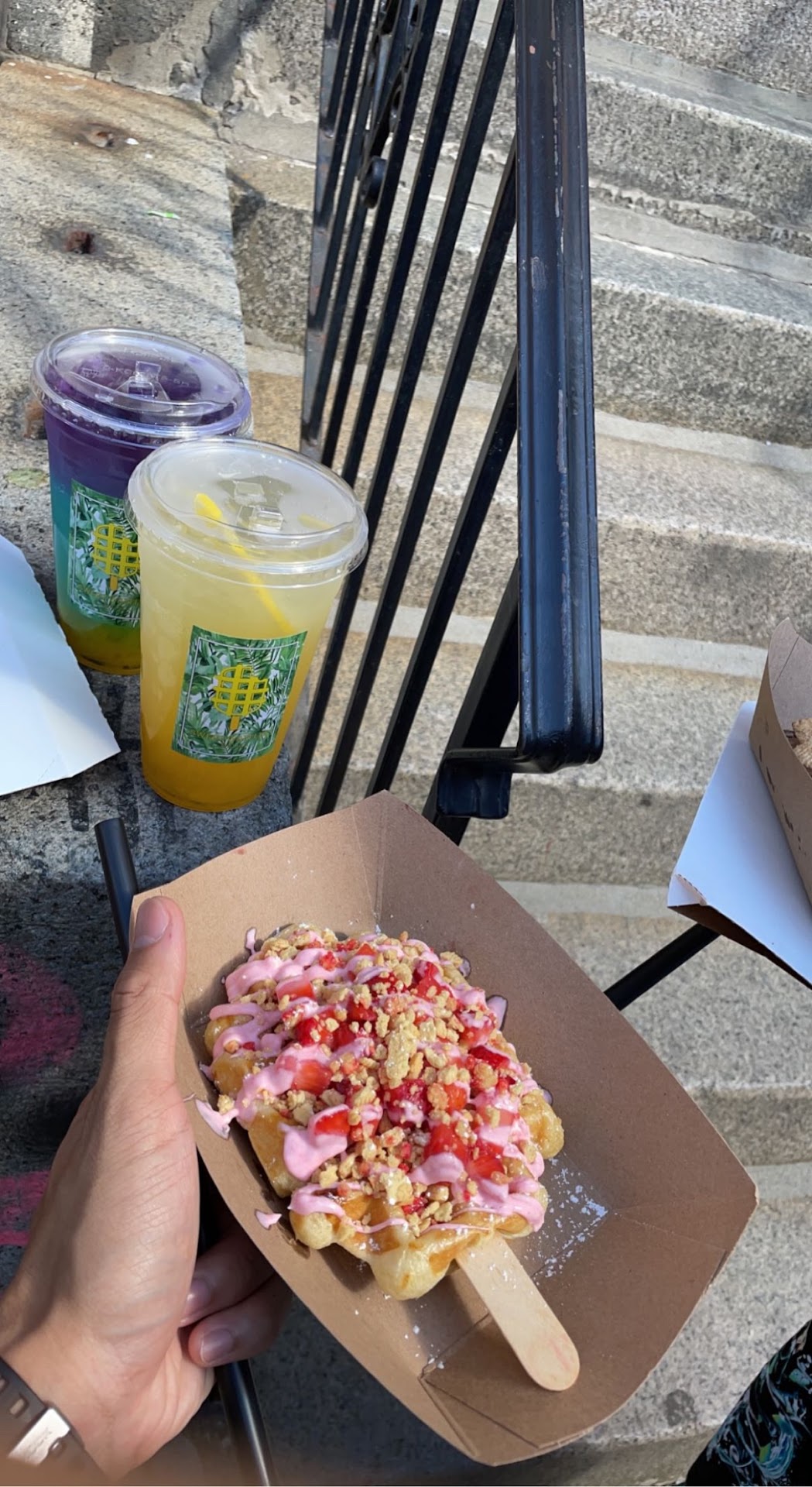 Last but DEFF not least would be the waffles, they have standard waffles that are hand made ranging from having cinnamon toast crunch, cookie crisp, fruity pebbles, apple pie, strawberries, trix, oreos, etc. The possibilities are endless considering you can put whatever you want on one or can just pick one of the amazing curated ones! (Iâm a churro crunch person myself)