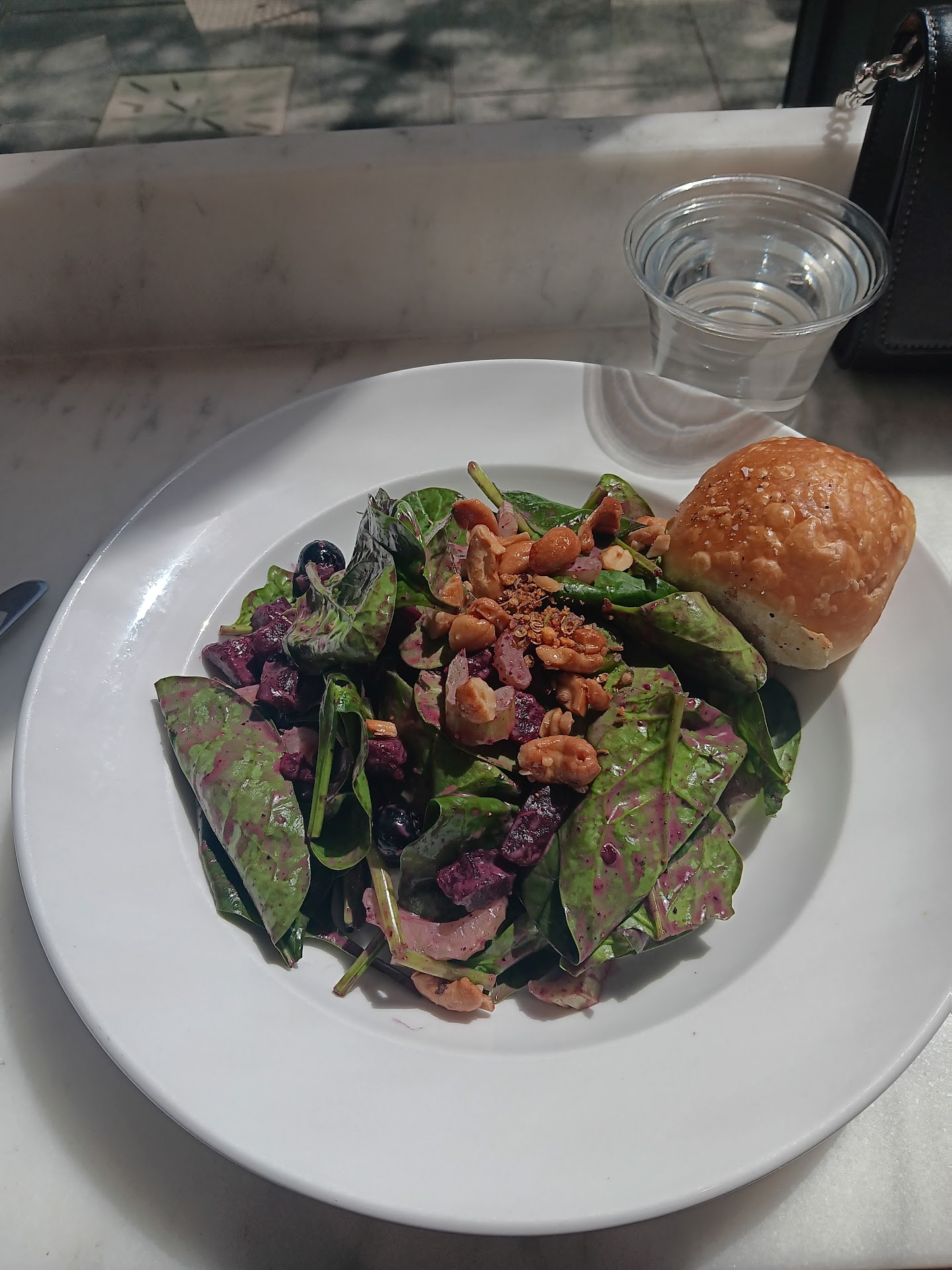 Read moreAbsolutely loved this place. I got a roasted beets, blueberry and whipped ricotta salad, it was absolutely delicious. This was a new flavor combination for me and I never would have expected these flavors to go together but I would definitely have that salad again. I believe my salad was about $16-18 which I thought was very reasonable. Also pictured is a ham and leek quiche which of course was absolutely delicious. I think the quiche cost about $12-13. The wait staff was all super nice, the atmosphere was open and light and inviting. Very well decorated and just an overall excellent dining experience, very comfortable setting. They had a huge variety of pastries that you can buy that all looked out of this world and flavor combinations that I've never seen before, very unique. If you're somebody who wants to try something different I would go there, you're guaranteed to find something you've never had...
