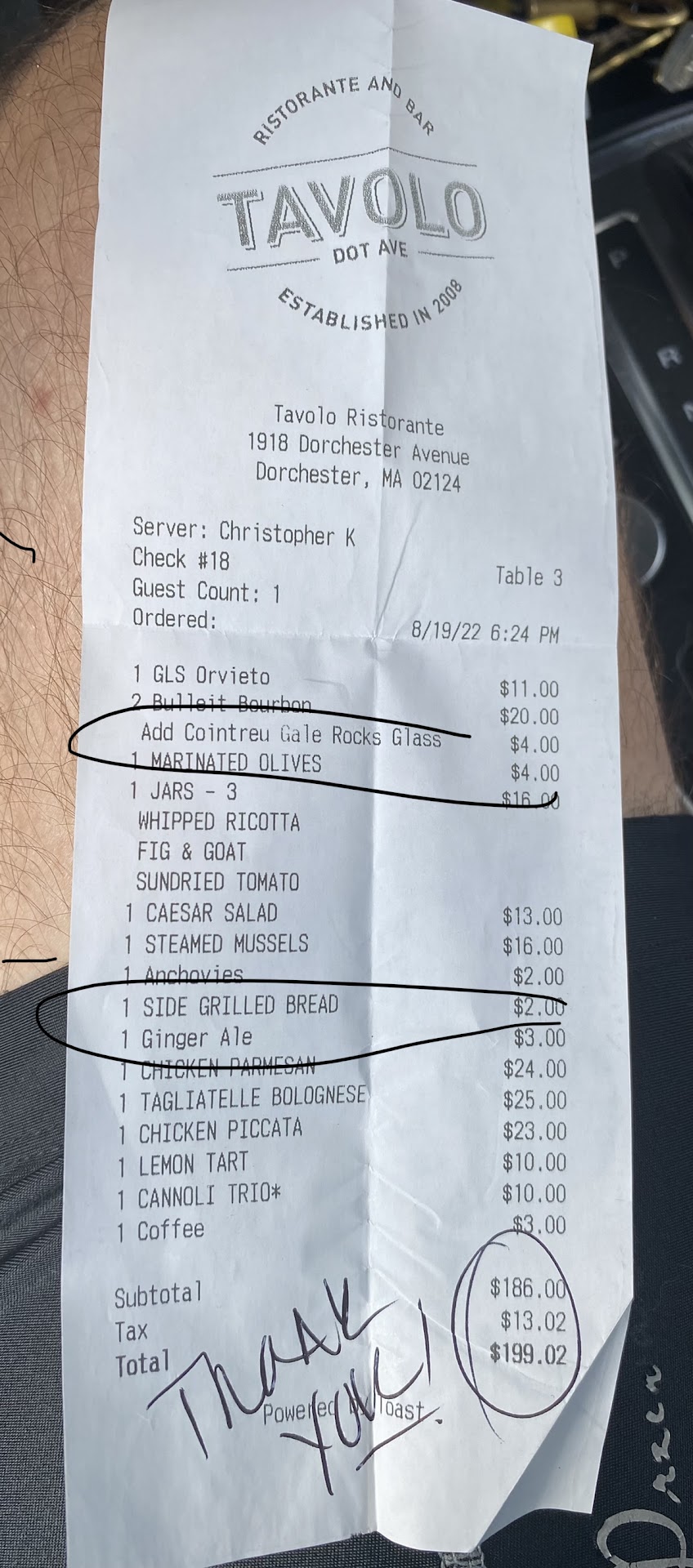 Because I was with a large group, I didn’t speak to the waiter. Everyone around us were eating pizzas….. that should have been a major clue….. I’ll give Tavolo a second try but will stick to the “Can’t screw up” pizza and cold beer options. Major corrections needed before anything more than 2 stars is deserved.