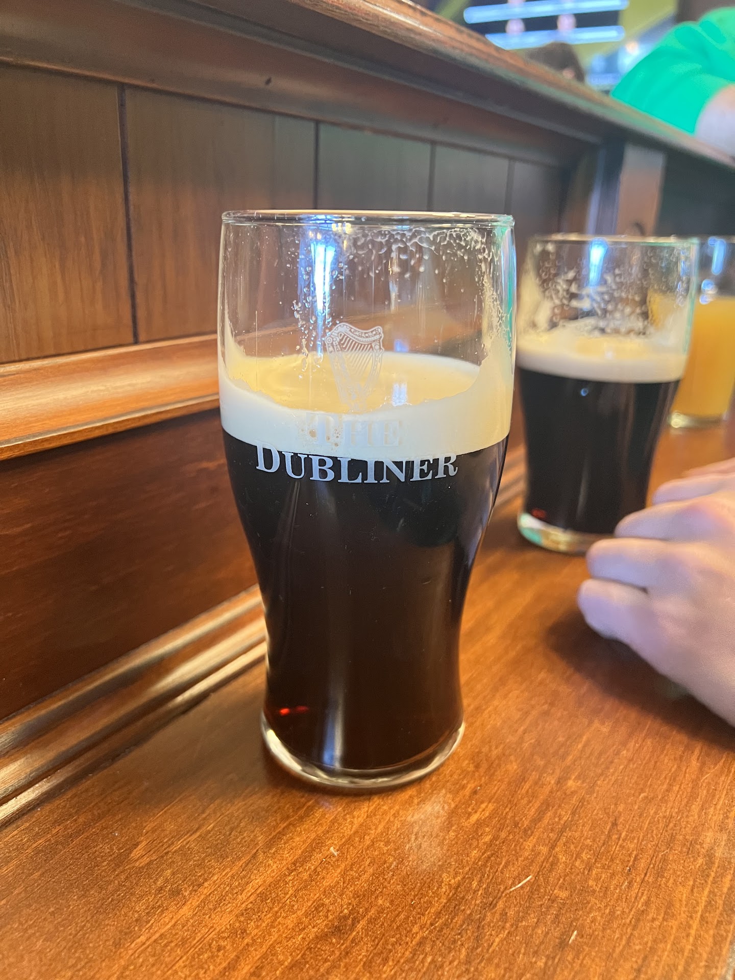 The food hit the notes I wanted. The pigs in a blanket came not as the dainty bites you expect, but as one hefty sausage wrapped in golden puff pastry, anchored by Colemanās mustard that had just the right sting. The Guinness beef stew was the star, tender beef, carrots, potatoes, and a gravy so deep and rich it stayed with me all night. It was the kind of dish that reminds you why comfort food matters, especially in a city that spends half the year bracing against the cold. The Dubliner burger was less dramatic but no less satisfying, a sturdy brioche bun holding together onion rings, lettuce, tomato, house ketchup, and fries. It didnāt need to reinvent the wheel, it was simply done right.