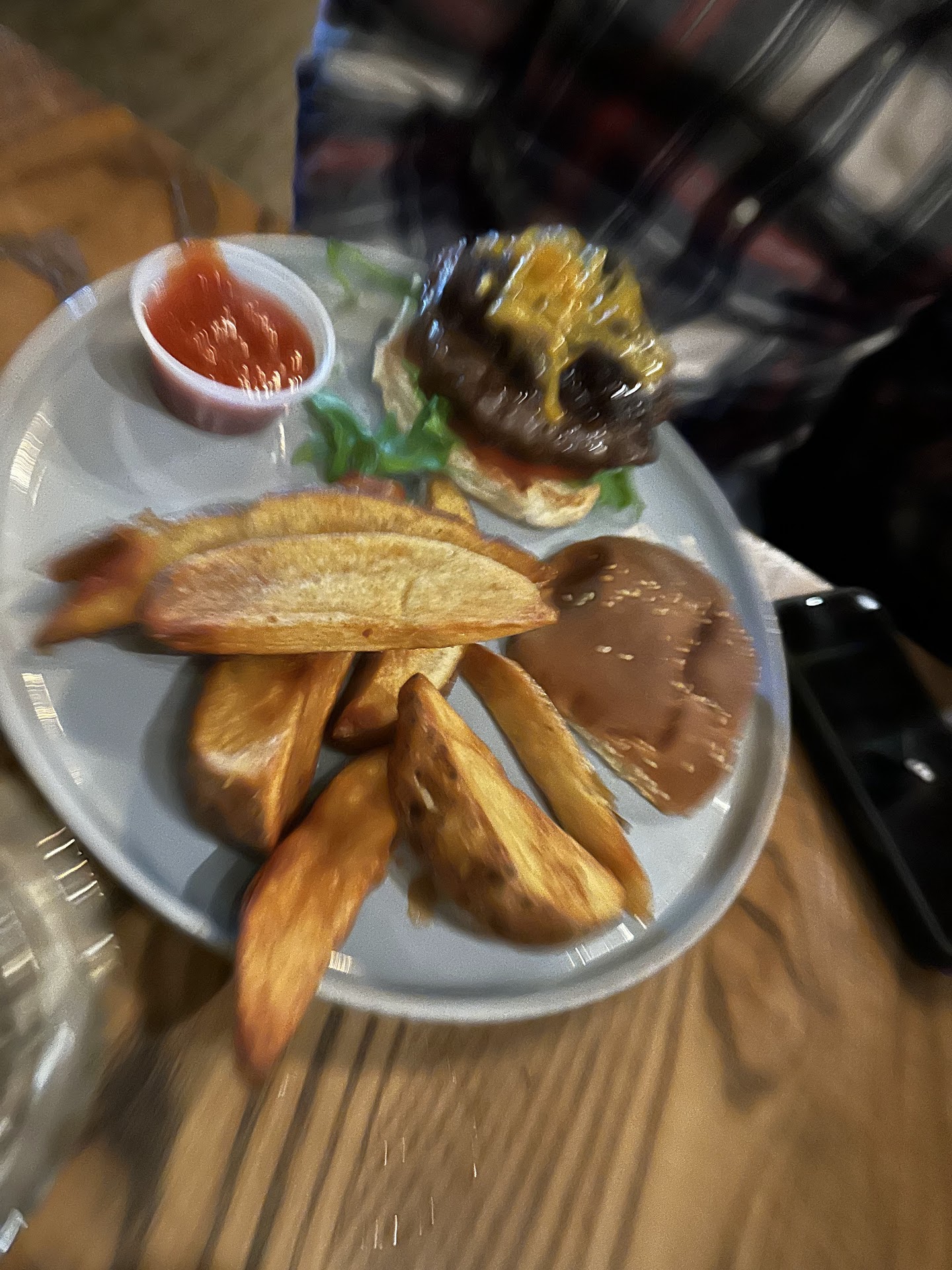 We were seated around 6pm before the crowd arrived. They have two chair/table options, the lower chair options ended up being hard and uncomfortable. My Sister was the first to comment on this. We ordered a couple of appetizers, I was surprised they offered neither, lemonade, ice tea, or sprite options. But, the waiter made an alternative recommendation and so I gave it a try. The appetizers came out rather quickly, and were descent in price and tasting. For the burgers I ordered a medium well and my sister ordered medium. When the waiter brought out the burgers and said “one medium one medium rare.” I informed him I had ordered medium well. He apologized for the confusion and said he’d check w/ the kitchen staff. My original waiter came out and explained he’d checked w/ the kitchen and the burger was infact cooked medium well. Sadly, after a few bites, my sister looks over and says, “That’s raw.” Not only that, but her’s was under cooked. We flagged down the waiter who brought the burgers back to the kitchen and some time afterwards brought out 2 new burgers. This time mine was cooked more mediumish (not satisfactory) was still pink. and my sister wasn’t pleased w/ how here’s was still undercooked. The waiter though apologetic, seemed like he was talking w/ his college buddies more than clients when conversing w/ us. In fairness, he may have been new, so I tried to be understanding.