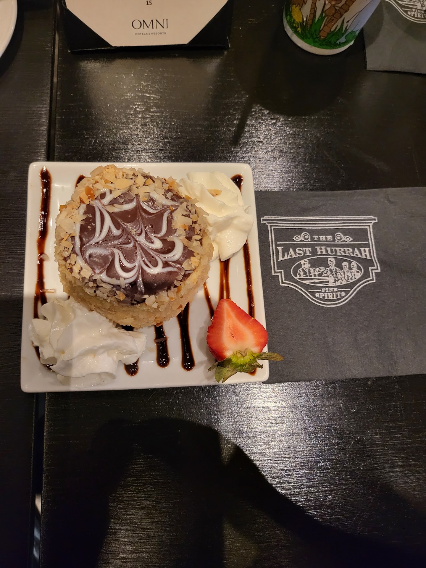 Read moreWent about 8pm on July 3, 2025 with my wife and 2 kids to have dessert…Boston cream pie. The doorman to the hotel was super nice. The hostess at The Last Hurrah, not so much. We asked for a table for 4. She looked annoyed and said there were no tables and didn’t know how long….when someone left one would be available and it could be 30 minutes or more. But that we would be next. I looked in and there was a table with 4 seats, but another group had their purses on it. I didn’t say anything and we said we’d wait. There were chairs in the hotel lobby area. We waited 30 minutes and were never seated. Right after we were told we were next a couple came in and she told him something similar to what she told us….but he complained about her lack of customer service and left. A few groups of 2 got seated. My wife decided to go to the bar and get dessert to go and we took it back to our hotel to eat it, missing out on the full experience and presentation of having it at the restaurant. It was good, and my wife said the bartender was very helpful. But beware of the hostess and her dirty looks and lack of customer service. We chose not to say anything to her as we knew it wouldn’t be helpful. They get a 2nd star because the cream pie was decent and we could have got the same thing at the the hotel prepackaged like we did...