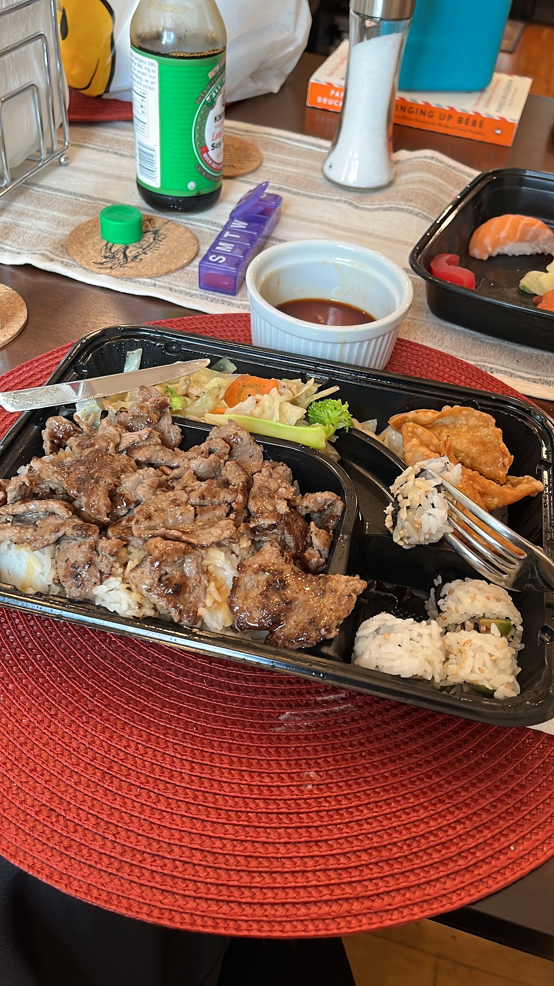 Tori Japan is currently running a buy-1-get-½-off or some kind of teriyaki bento deal that isn't really a deal, but everyone who walked in when I was there ordered it. I don't know if it's a tasty deal or just convenient because the customers were all there to pick it up. No one sat down to eat, and I don't know if any of them were returning customers.