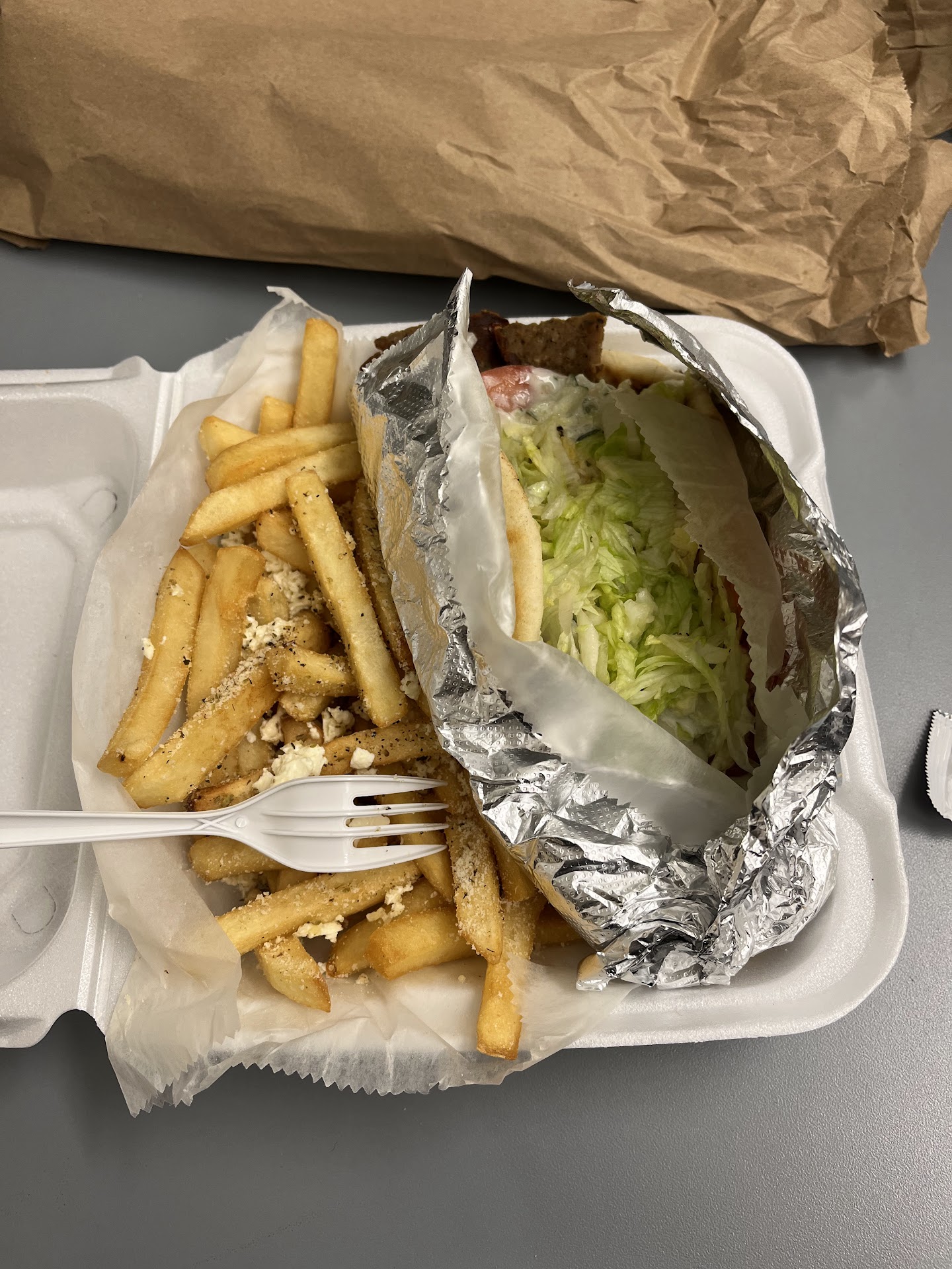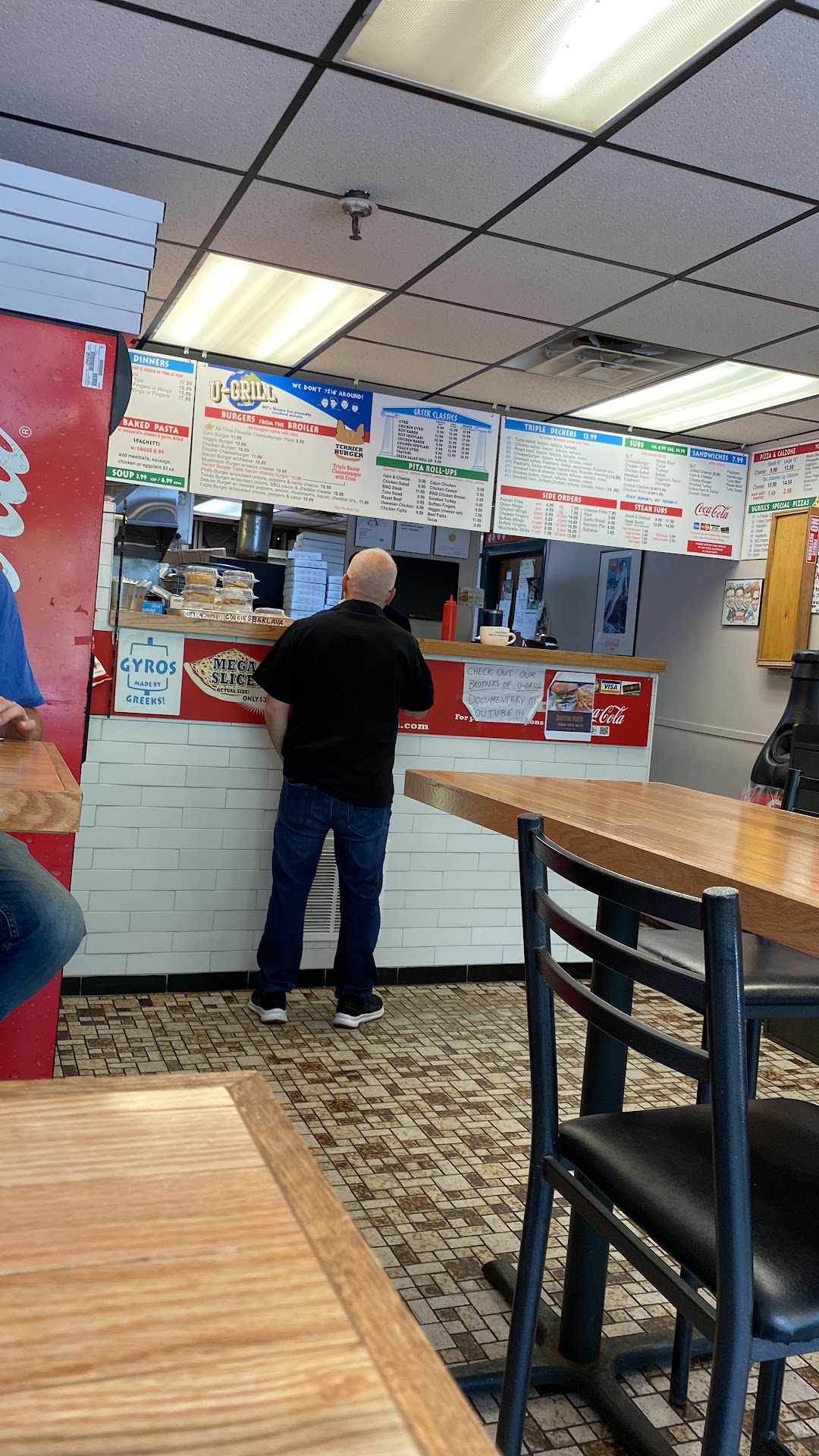 Someone told me to try out this place. I walked 30 min. I walked in. Modern look of an old school Greek fast food place. How do I know I worked in some of them. The man on the counter was very polite, took my order. Great. I ordered 2 large subs, 2 slices and French fries $50!!!
