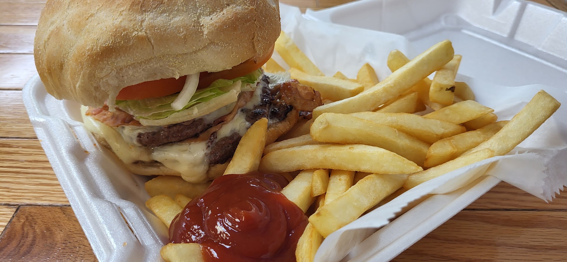 The 2 subs tasted very blend. No salt no black pepper on the steak bomb. The bread could be a better quality. The French fries no seasoning at all. Bland tasting. My discovery, someone then they packed the fries put salt and pepper packets on the bottom of the bag. On top put the plate and the French fries. How the hell you can go to the bottom of the bag take salt and pepper and season your fries?!