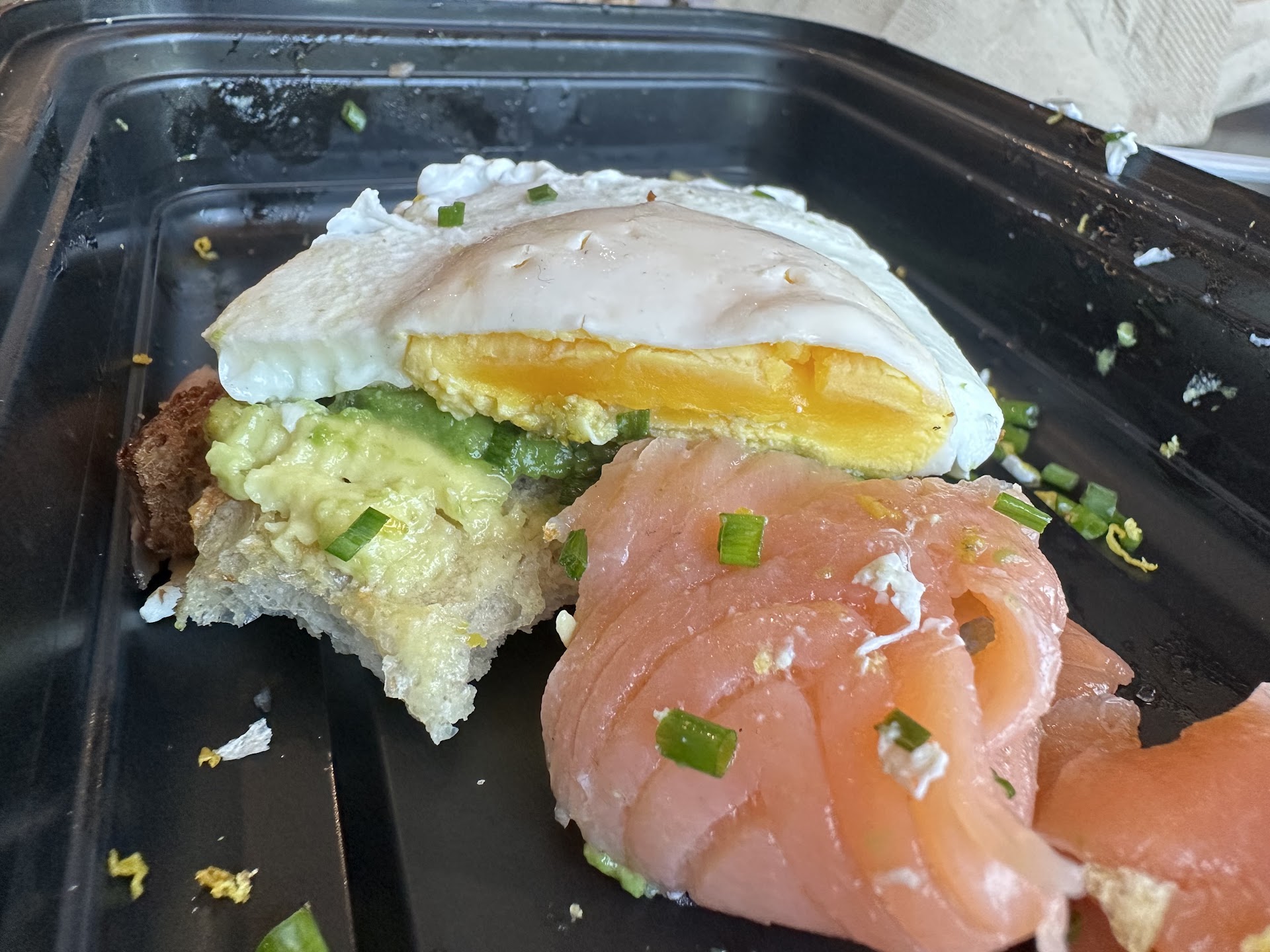 Quality was on par with a cruise ship buffet; The bacon-less BEC was remedied with a huff and two strips of bacon that had been sitting in a warmer, but despite our requests for “over easy” eggs, both of us got cold eggs that clearly hadn’t been cooked within the most recent hour. Despite never being asked if we would be dining in, our food arrived in to-go disposable Tupperware, which further cheapened the experience, especially when compared to the myriad photos online that flaunt fresh and well-plated entrees.