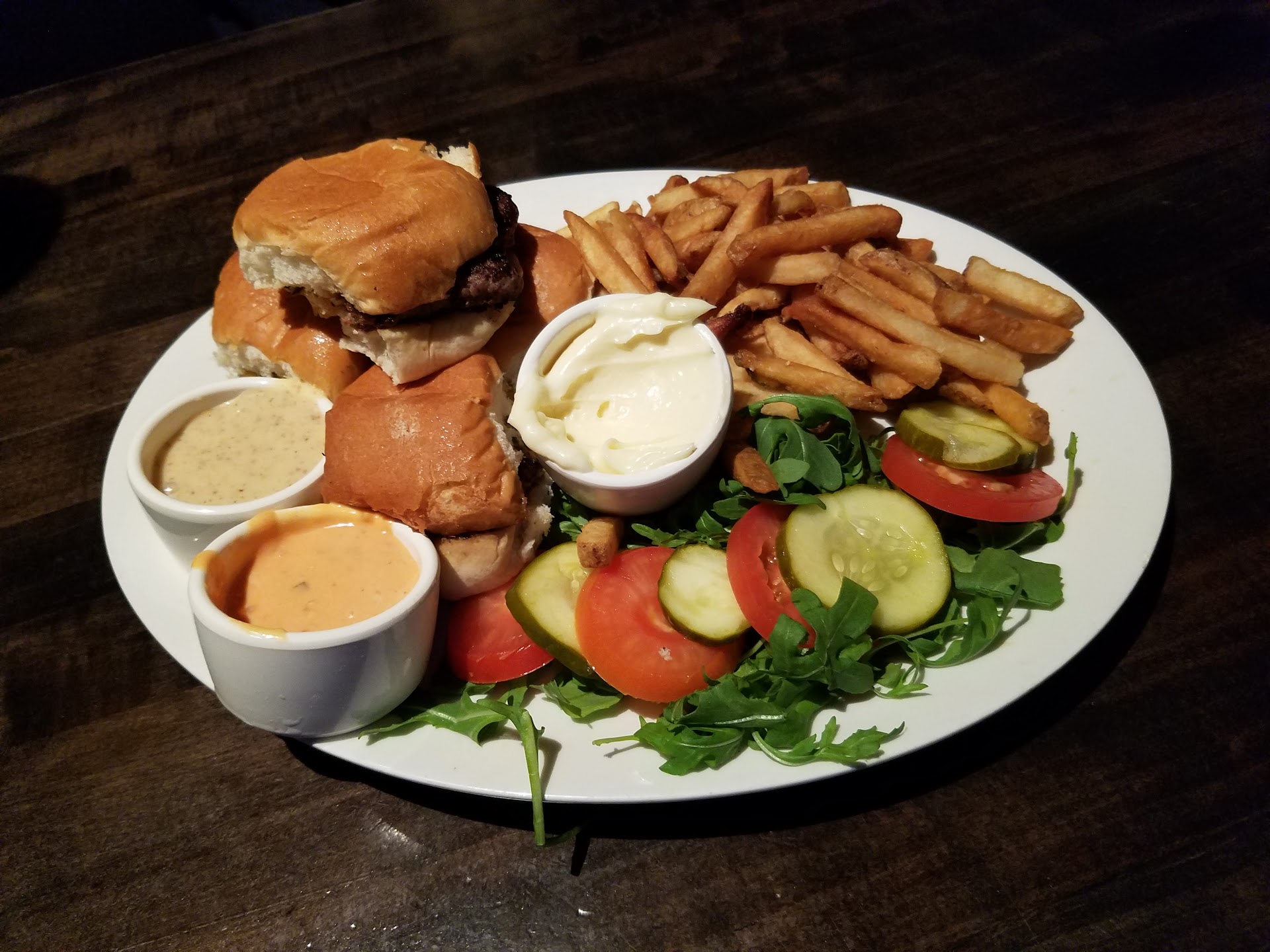 I’ve never had a server here just be friendly for no reason. Never introduce themselves, ask how I am, and generally just don’t ever want to have to actually serve me. The bartender who put in my order to go instantly forgot about me after I paid. And tipped. I asked about my to go order, after at least 25 minutes, he says,”oh they found it.” Which means that it was just sitting in the back or they accidentally gave it to someone else. And when I opened it to check it that’s what it looked like. I wish I would have taken a picture. Change your damn fryer oil.