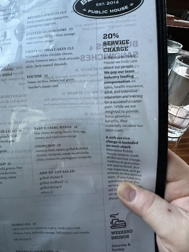The space was honestly pretty cool & the service was good. A lot of people really like John Howie and I hear a lot of enthusiasm about his restaurants. I moved out of WA nearly 6 years ago now and I haven't tried the others but after I saw the note on the menu about the 20% service charge, I never will. This is part of the crap that made my family decide to leave WA after loving it and living there our entire lives. If you feel like restaurant staff should make the same wages as people who went to college or learned a trade & are laboring in their learned fields, just raise your prices accordingly & pay them what you think is fair. Don't pull this sneaky crap where you post a menu but add a massive, surprise surcharge that really impacts the bottom line & affordability of your offering. Those of us who actually worked very hard for tips at some point in our lives and were lucky to get 15% if we really hustled are just annoyed at this garbage.