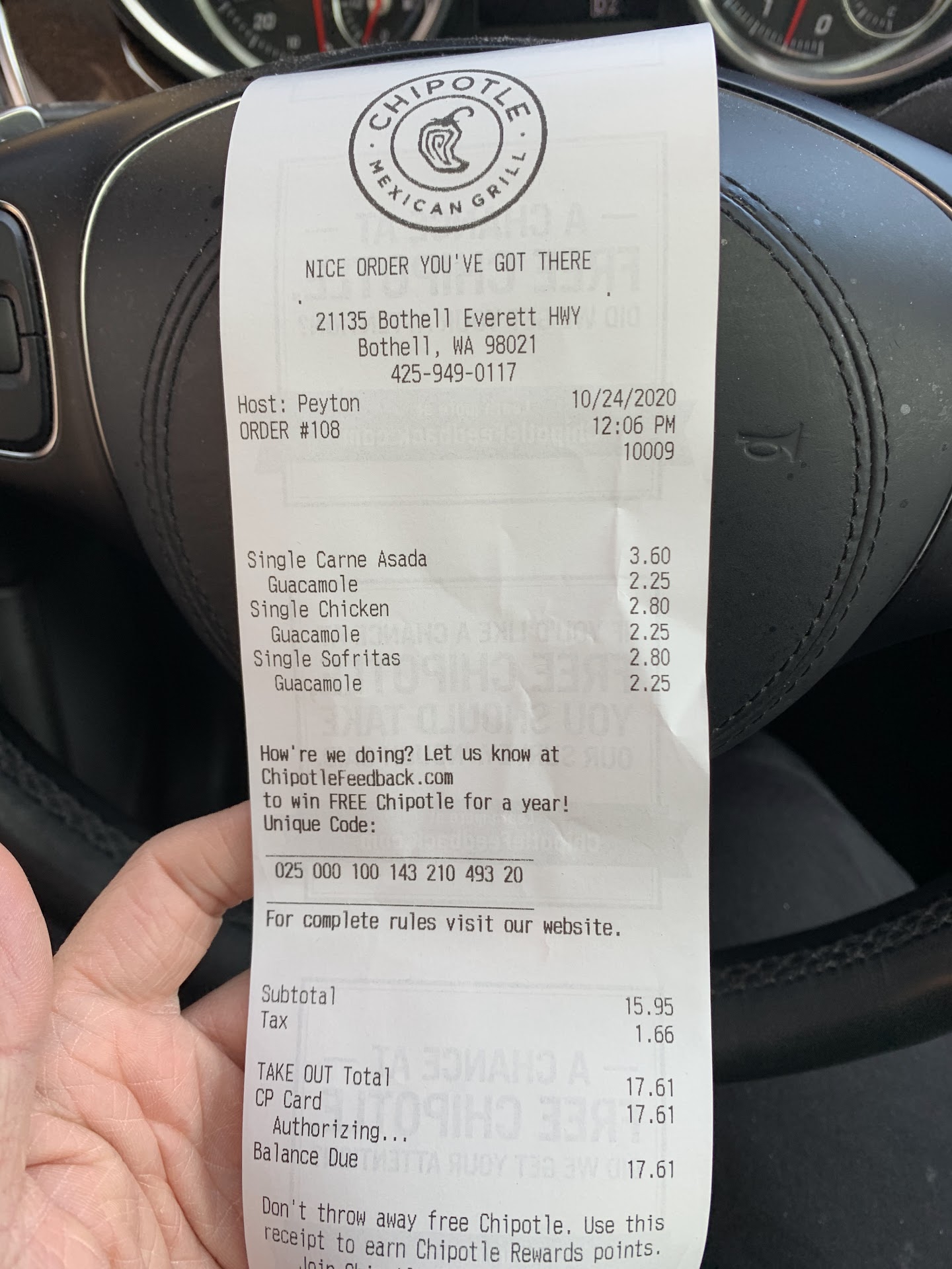 Chipotle team , I had so much respect so far to people at Chipotle and tasty food you make. but now it's GONE. Overall it was a nightmare experience had.