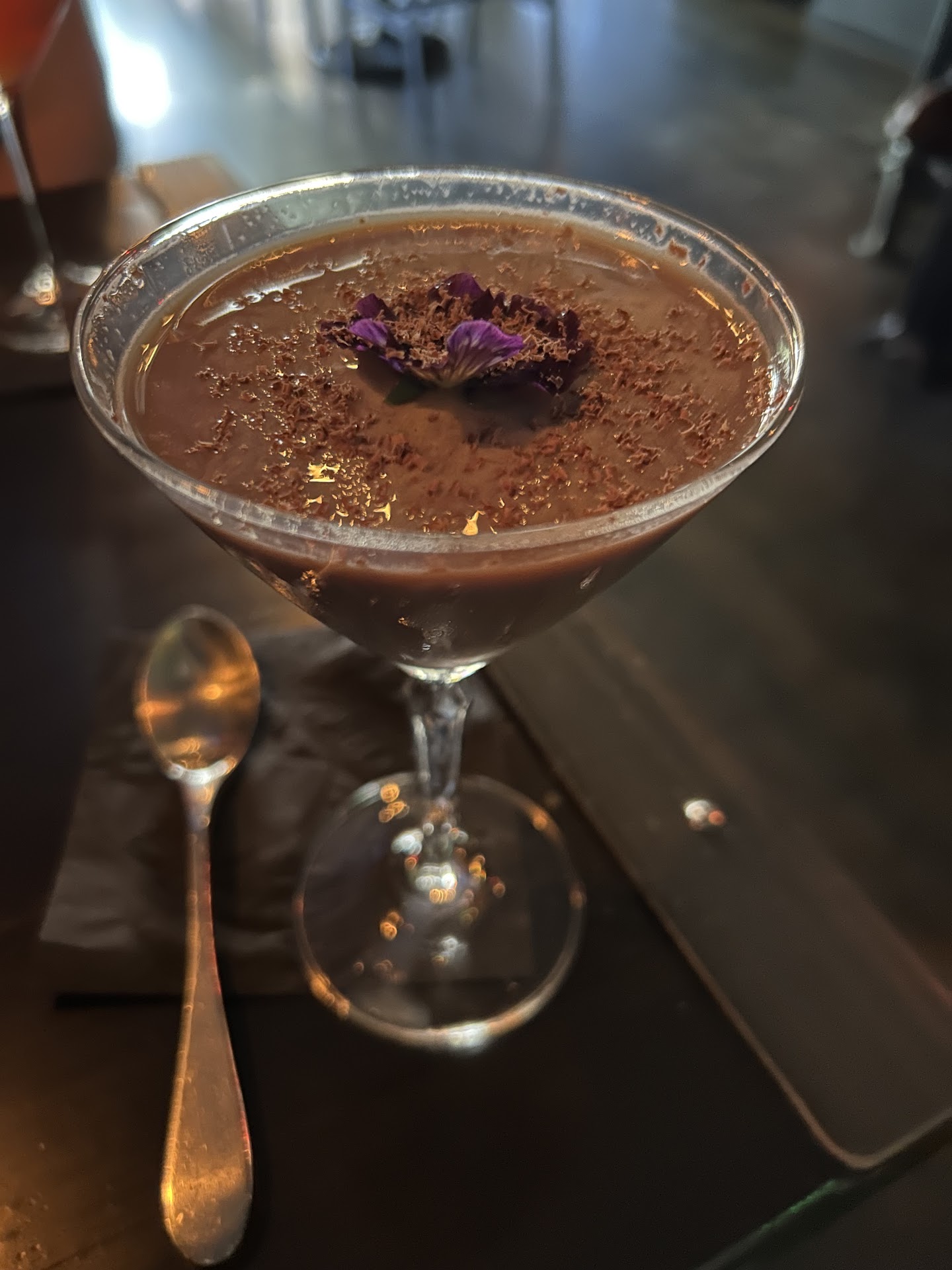 After we each had ordered two drinks off the menu (which were some of the best cocktails we have had before), we started talking to Cameron, the bar manager, who we found out was the creator of all the cocktails on the menu. Immediately we could tell that this was his craft and he has a passion for making cocktails that is rare and unmatched compared to your typical bartender. After chatting for a while and finding out how he ended up in small-town Bothell, we asked if he would be willing to do a 'Bartender's Choice' and make us a drink off the menu to close out the night. After asking us for our alcohol preference, he made sure to see if we preferred floral vs. citrus, bitter vs. not, etc. It felt almost like dinner and a show sitting at the bar top as we were able to watch Cameron create these craft cocktails with such skill and passion. Each drink and the process of making it was unique and satisfying. I was given the best chocolate martini of my life topped with an edible flower and my boyfriend had a spin on an old-fashioned, which Cameron declared would be called "The David", completed with a spritz of absinthe (of course sprayed out of an antique perfume bottle) and was delivered lit on fire.