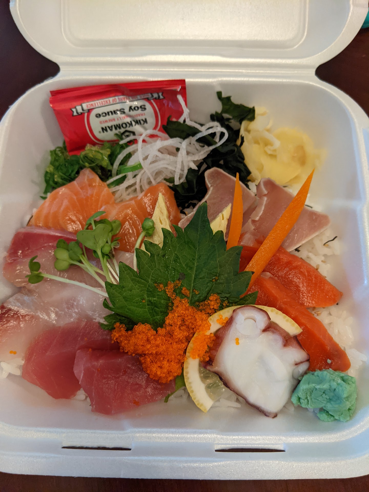 This is our favourite place for Japanese take out during the pandemic. Food is still really fresh, we have never gotten sick and getting take out is easy: you can order online or over the phone and you do not even need to go into the restaurant. They will bring your order to your car which is so nice. We always get chirashi and a 3 roll combo. I have been meaning to try their croquette because a Japanese friend says they taste just like the ones in Japan. I love this place. I think they may have reduced hours right now and may also be closed for lunch on Tuesday. Please support them!