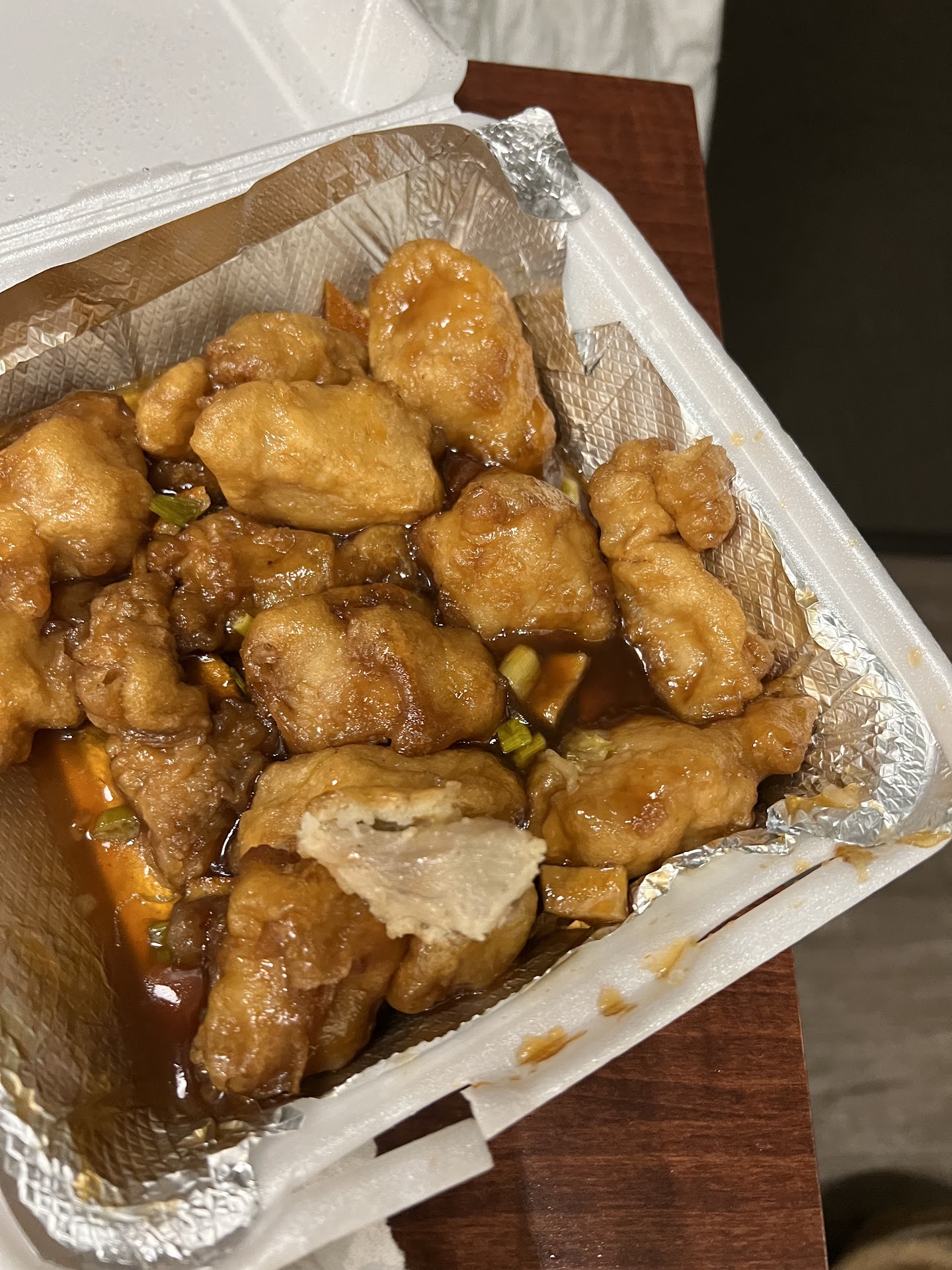 FOOD: General Tso’s Chicken (medium spice) $15.95: 3 stars. Visually, the individual chicken breading are decently sized. Most pieces is 1-2 bites but if you’re not being dainty, you can definitely shovel down in a bite. The size of the actual chicken is small. The restaurant disguises it with double the breading LOL. Since it’s sauced, I can’t tell you if it’s crispy or not. Taste wise it taste like standard general tso chicken. Nothing special but taste pretty decent. You do get a doughy taste due to the amount of breading. REHEATING: Usually I don’t have leftovers - either cause it tasted really good or was so bad I didn’t want to take it home…. Anyway, reheating surprising didn’t taste worse. It was kind of the same lol Salt and Pepper Pork Chop $15.95: 4 stars ONLY because it tasted better when reheated. Visually, they were a decent size but similar to the chicken, the pork pieces were smaller than expected when you first look at it. Double the breading. Taste wise compared to the chicken, I’d definitely get the pork over the chicken due to size and taste. I loved the salt-pepper, chili, Scallion taste. Personal preference but it was weird that they had “long” pieces of Scallion. Usually I’ve only seen the thin cuts of scallions. REHEATING: Definitely gave this dish a level up. Maybe if we had the dish at the restaurant it would have been the same as reheating it in the air fryer..??? It crunch from air frying and the spice made this dish 4 stars. Beef brisket wonton noodle soup (not on the menu) $15.95: This wasn’t on the menu but we ordered it because we saw someone else eating it when we went in to order our to-go order. I only ate pieces of this dish as this was something my mom ordered. Her answer if this was good was “your dad makes it a lot better.” The beef brisket and collagen pieces I would say are on the smaller size but very tender and flavorful. The dish only comes with 3 wonton pieces. Besides more wonton, Mm mom wished they included daikon pieces that normally is used for the broth.