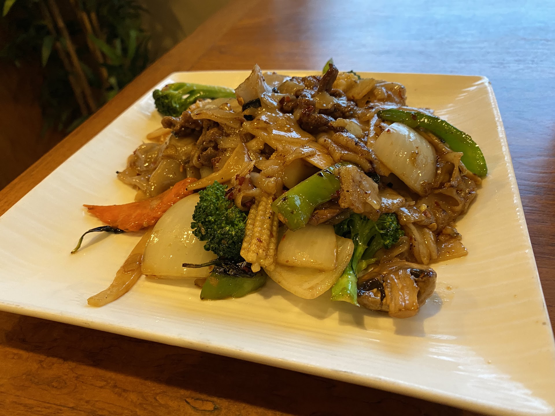Read moreAlthough I cannot attest to the quality of the rest of the menu, I was very dissatisfied with the quality of the Drunken Noodles I’d ordered to-go. The first thing I noticed was the unusual smell, which kind of reminded me of garbage to be honest. But I figured maybe that’s just how drunken noodles smell, and that it might taste better. From the first bite I noticed that the noodles seemed more like a glob of soggy lasagna than actual noodles, giving me the impression that they were prepped in advance rather than being cooked to order, but if that was the case I don’t know why they told me it would take 30 minutes to prepare. On my fourth bite I finally tasted that which I’d been smelling and immediately spit it out, then threw the rest of the dish in the trash. I’m not entirely sure where that taste/smell came from - the vegetables and mushrooms seemed pretty standard fare, the tofu was tasty, and the dish wasn’t exactly drowning in the chili sauce, so my best guess is that it came from the mushy noodles, particularly as that was what was primarily in my mouth for that...