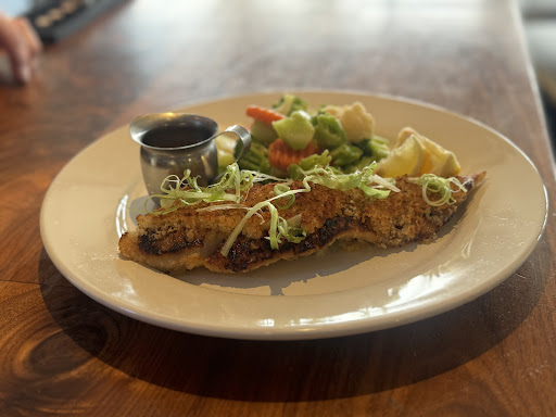 They have a few kinks to work out with food and service. We ordered the nachos. Another table mistakenly got our order, so we had to wait a bit for them. We asked for appetizer plates. The waitress didnât return with them, but a bus girl was able to get us some. The nachos were good and worth the wait. The French Onion soup was yummy, however it was delivered after we were served the main course. Two at our table ordered sandwiches and they were great, but the fries were cold. Two of us ordered the grilled romaine Caesar salad. The steak was really tough and cooked well done. The server should ask how you want the steak cook (default should be medium). The steak should be sliced (it was a few large chunks). The salad was drenched in dressing. With it being grilled, it made the lettuce soggy.