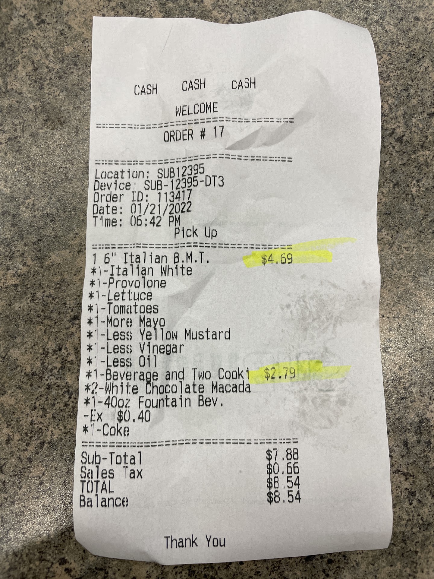 I tried calling the store and the Director of Operations listed on the receipt (which ironically says, "If is not right, Iโll make it right!"), but no one answered. I drove back to the store and explained the issue. I showed the uneaten sandwich and the receipt to the staff and asked for both sandwiches I had purchased to be remade, since they were now cold.