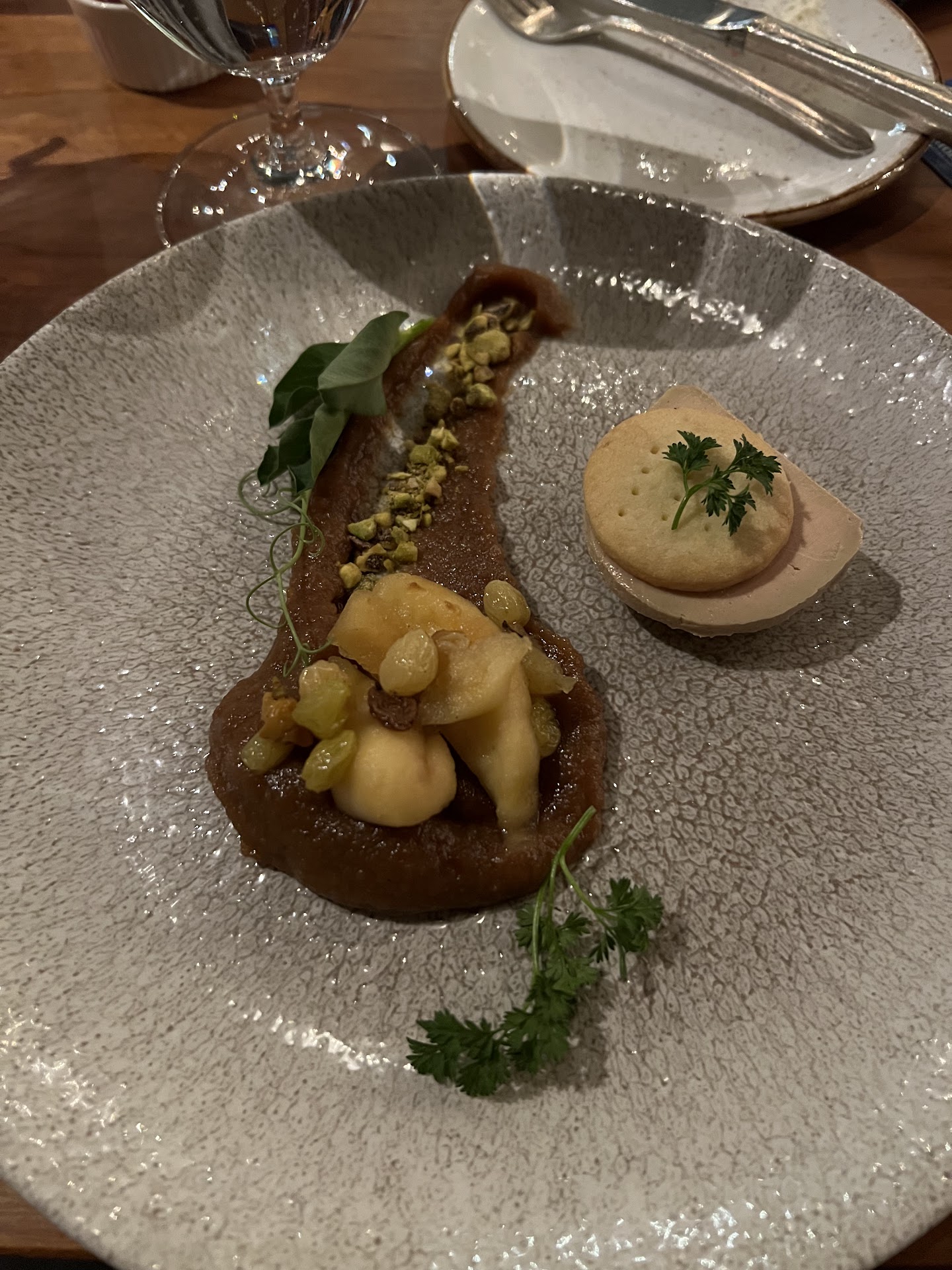Read moreHad a company Christmas dinner there. Nice ambience! The decor was lovely. I especially loved the photo of the beautiful smoking woman situated between the two nude/landscape photos (Boulder needs no more photographs of skinny naked white women in lovely places). The music was typical, however one could actually hear and converse with everyone at the table! A novelty on Pearl Street indeed. The salted radish appetizer was delightful and original. The Tunis lamb was unexciting on its own, however the excellent preparation of the sides (with the exception of the ice cold dollop of saag) elevated the experience significantly. My wife's spiced broccoli entree was dynamite! The red lentil fritter was interesting. The spice cake was good, but made great with the poached pear. $65 for the three course was entirely reasonable. The wine list was solid. Plenty of options for the common & pretentious man alike. Service was very attentive. I left very satisfied with the experience. Bramble & Hare was my first sit down dining experience since the onset of the pandemic. Perhaps the food was too rich for me. Perhaps my exposure to the industrial coatings I use daily at work, yet outlawed in Europe, was higher than normal that day. However, I suspect it was the ice cold dollop of saag that was to punish me for it's consumption long into...