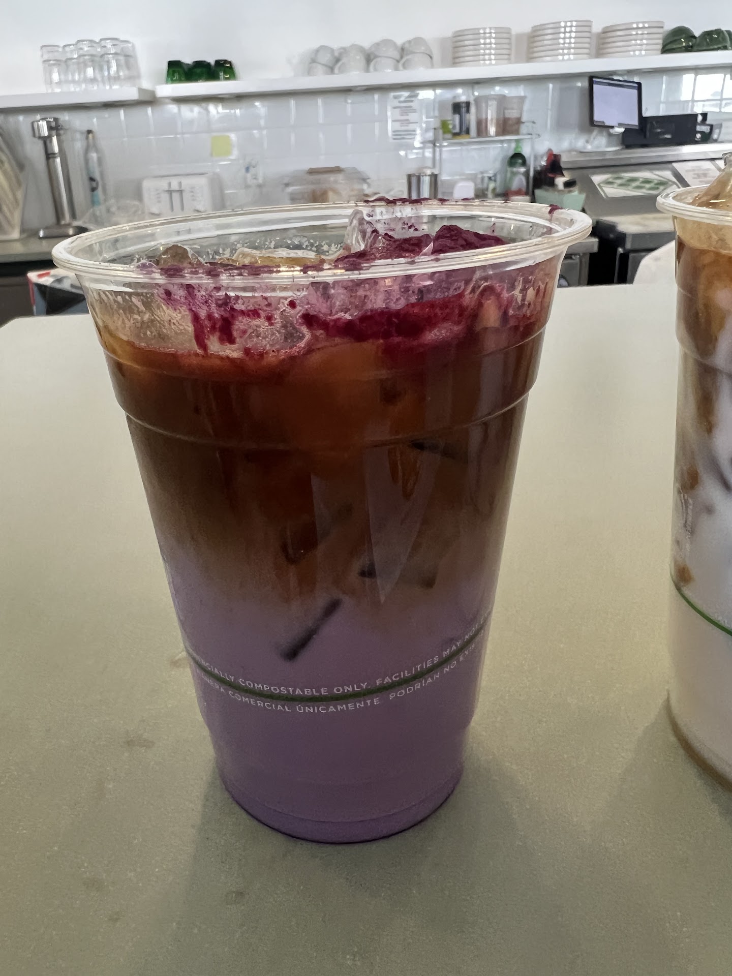 I ordered an iced salted honey latte and my partner had an iced sweet Ube latte. A lot of their drinks feature Asian flavors, for example they have a miso hot chocolate, five spice latte, black sesame latte - you get the picture. They also have a whole section dedicated to flavored matcha! I was happy to see they have a wide variety of caffeinated and non-caffeinated drinks. Nondairy and alternative milks are available.