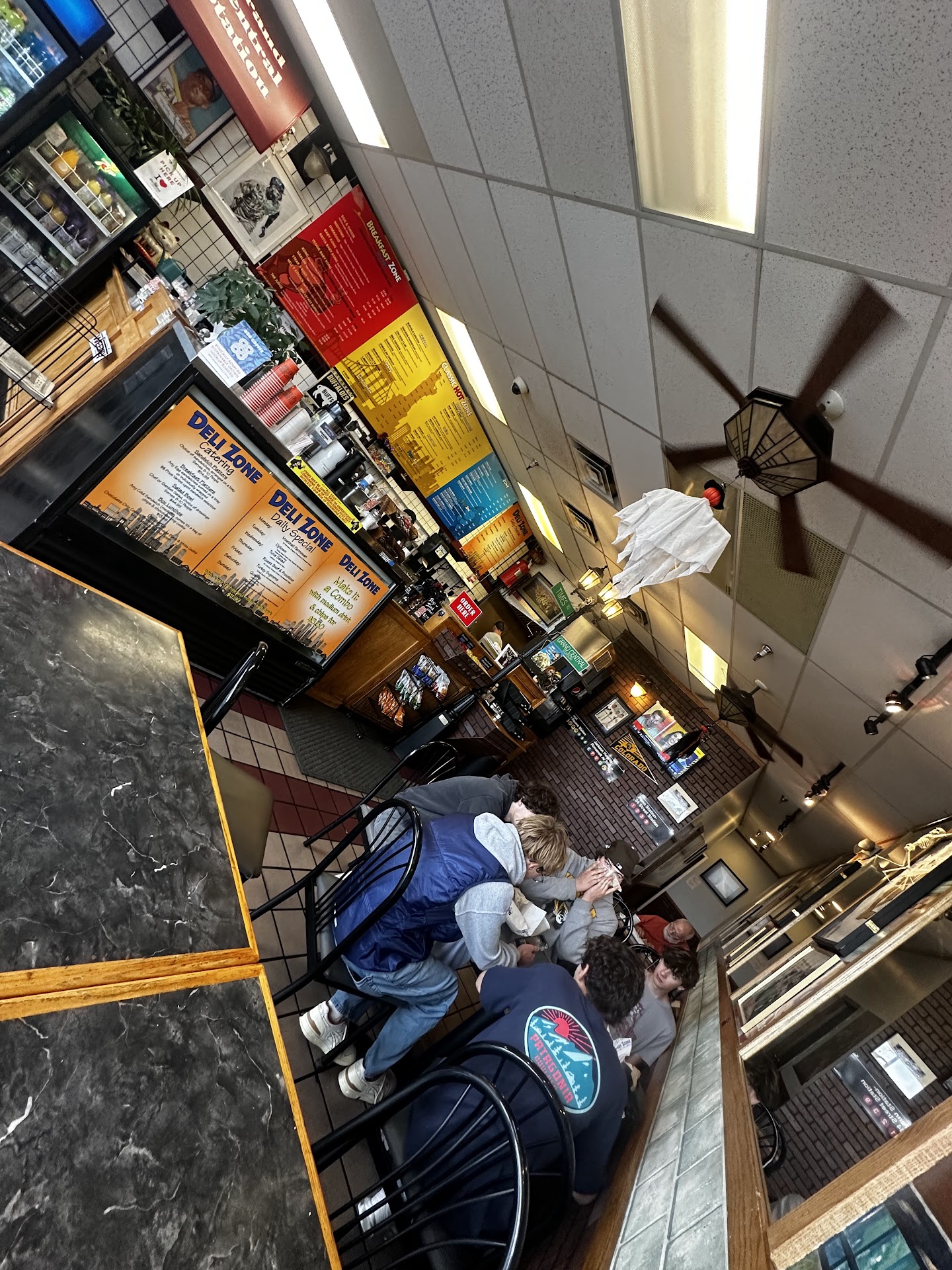 I would give the food here a 4 star review, as with all Deli Zones. It's good food, but there are better places to get a sub. The service here is almost always fast. There are really only two things that bother me about this place: