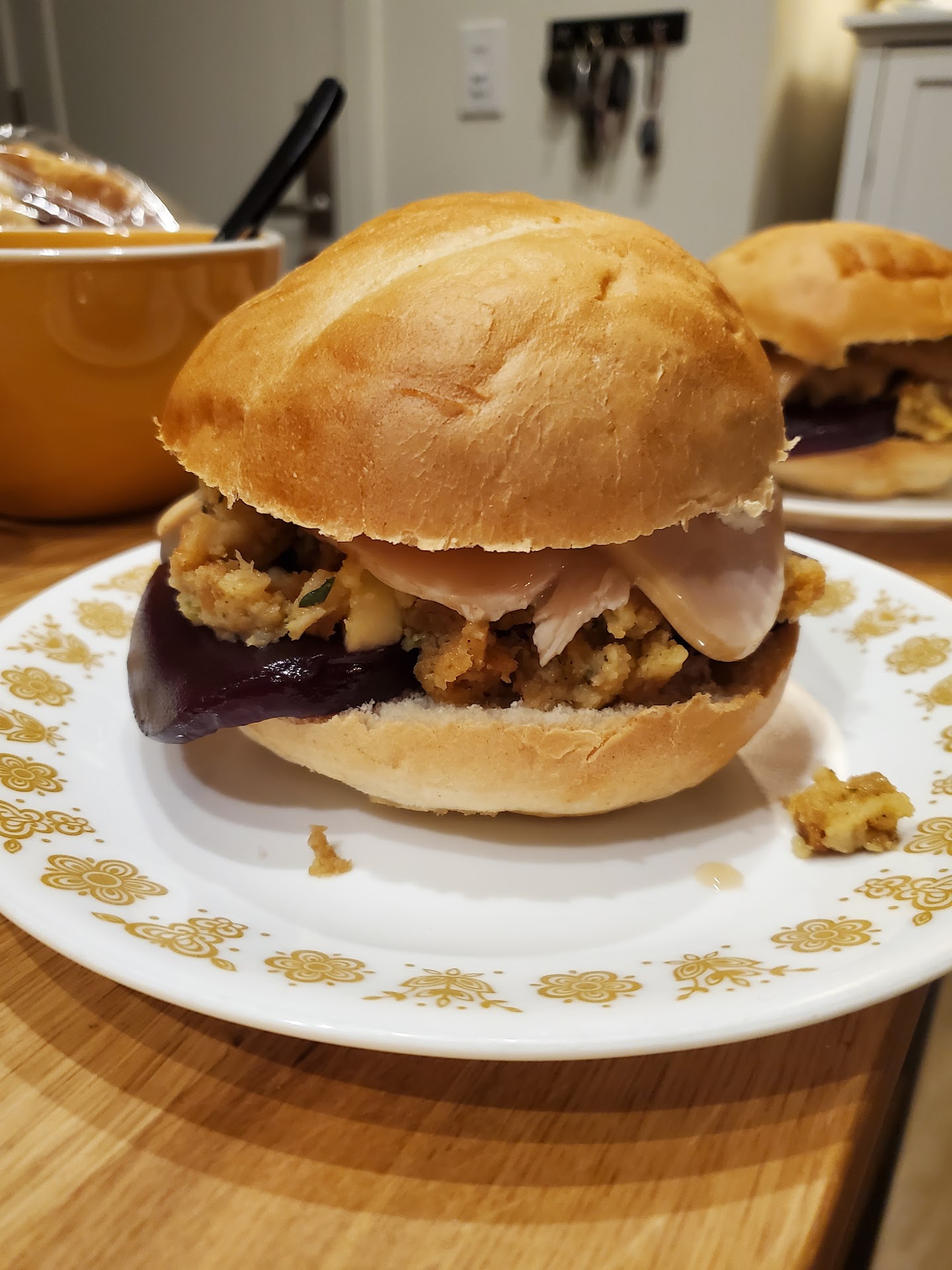 Read moreI really wanted this place to be good, but it just wasn't. I ordered the Thanksgiving sandwich which should have been packed with flavor, but it was such a sad meal. The sandwich was little more than a couple of turkey slices slathered in a very thin layer of cranberry jelly...no stuffing, no gravy. It was completely flavorless and uninspired. It was so disappointing that--still hungry and now craving the real deal--I went to the store, bought a box of stovetop stuffing, a can of cranberry sauce, and made my own version (pictured) at home that was 10x better than theirs. I only wish I took a picture of what I received at Dish Gourmet to compare side by side. You know there's a problem when you can do better than...